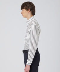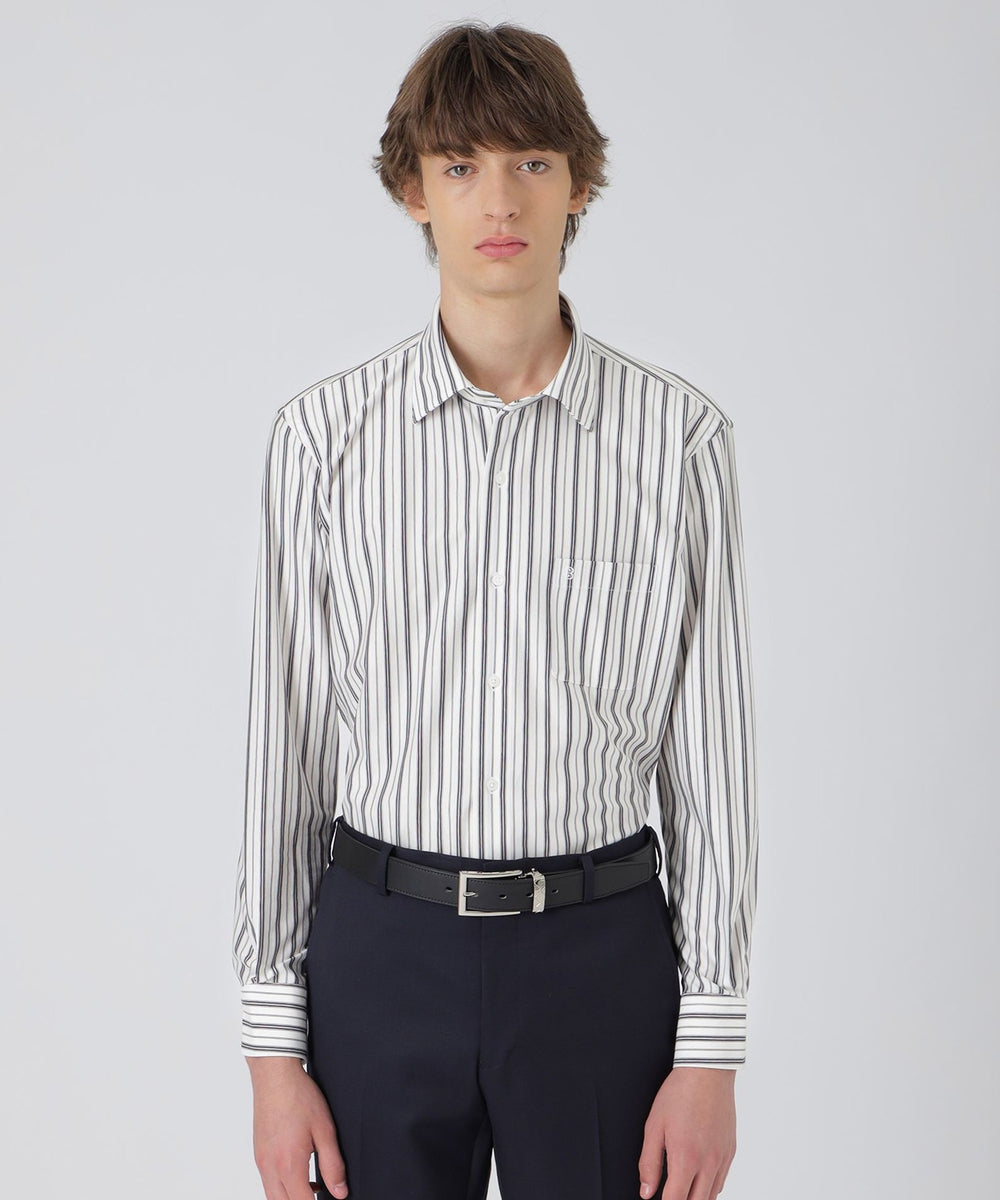 【機能性と抜群の着心地に優れたオルタネートストライプセミワイドカラーシャツ】