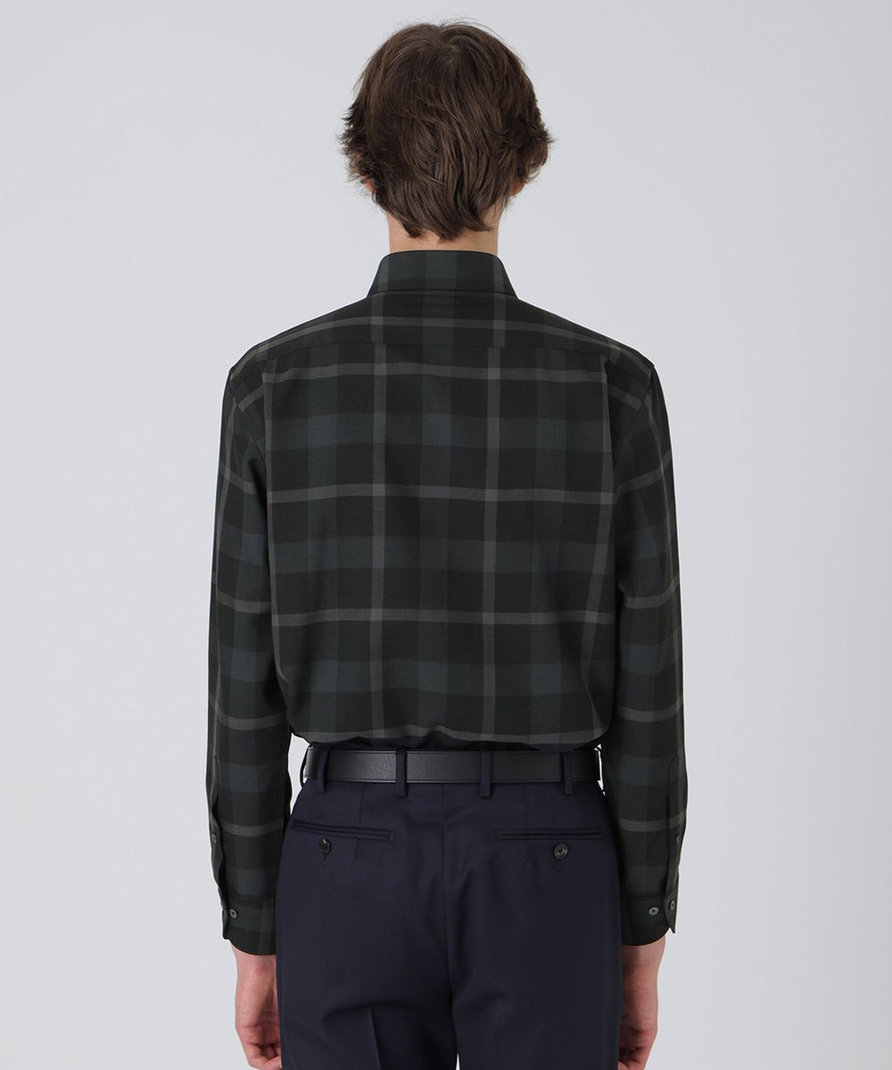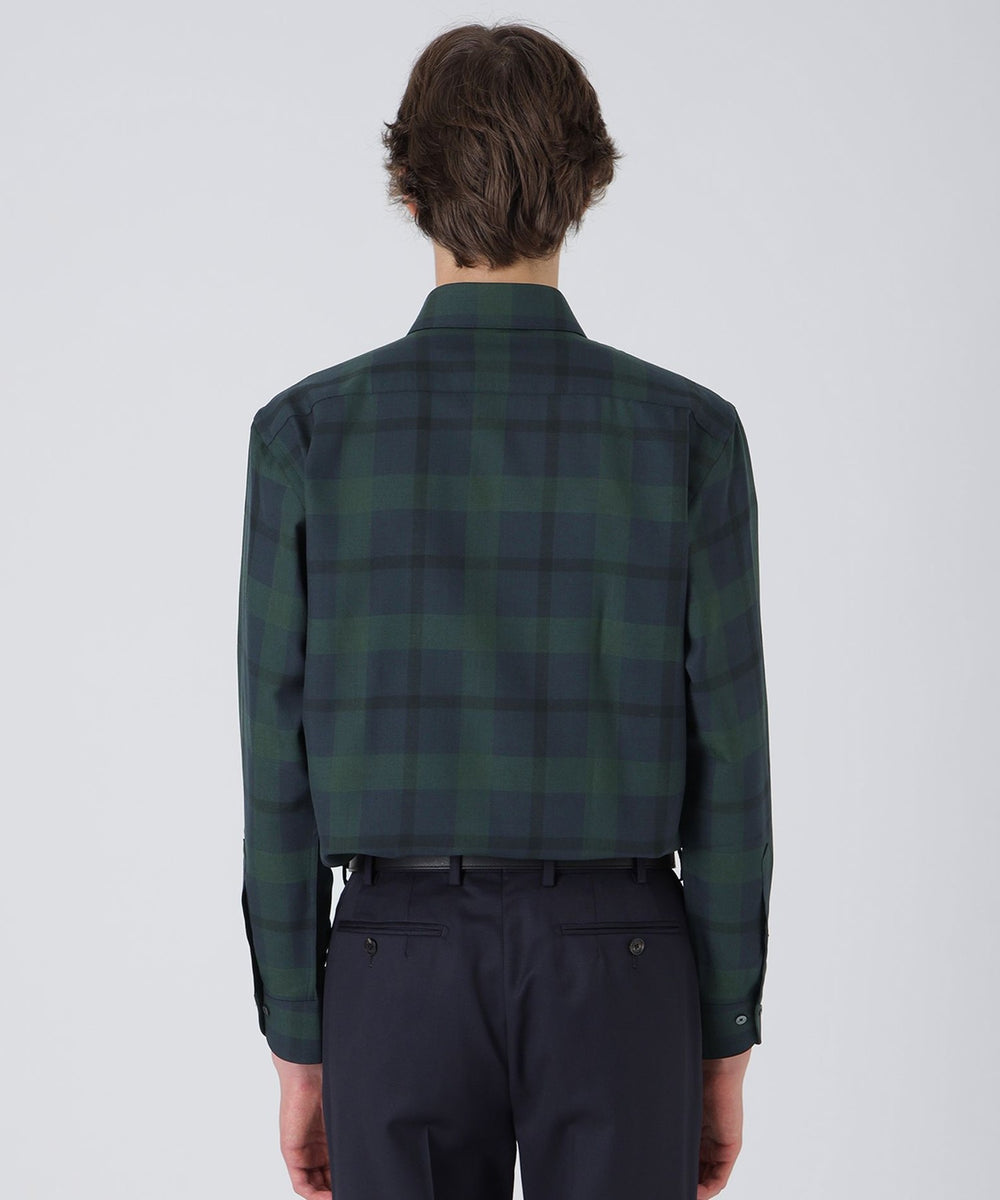 - ウォッシャブルウールクレストブリッジチェックセミワイドカラーシャツ