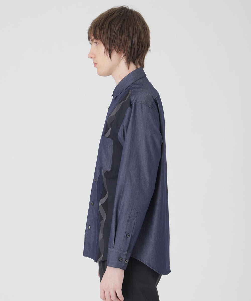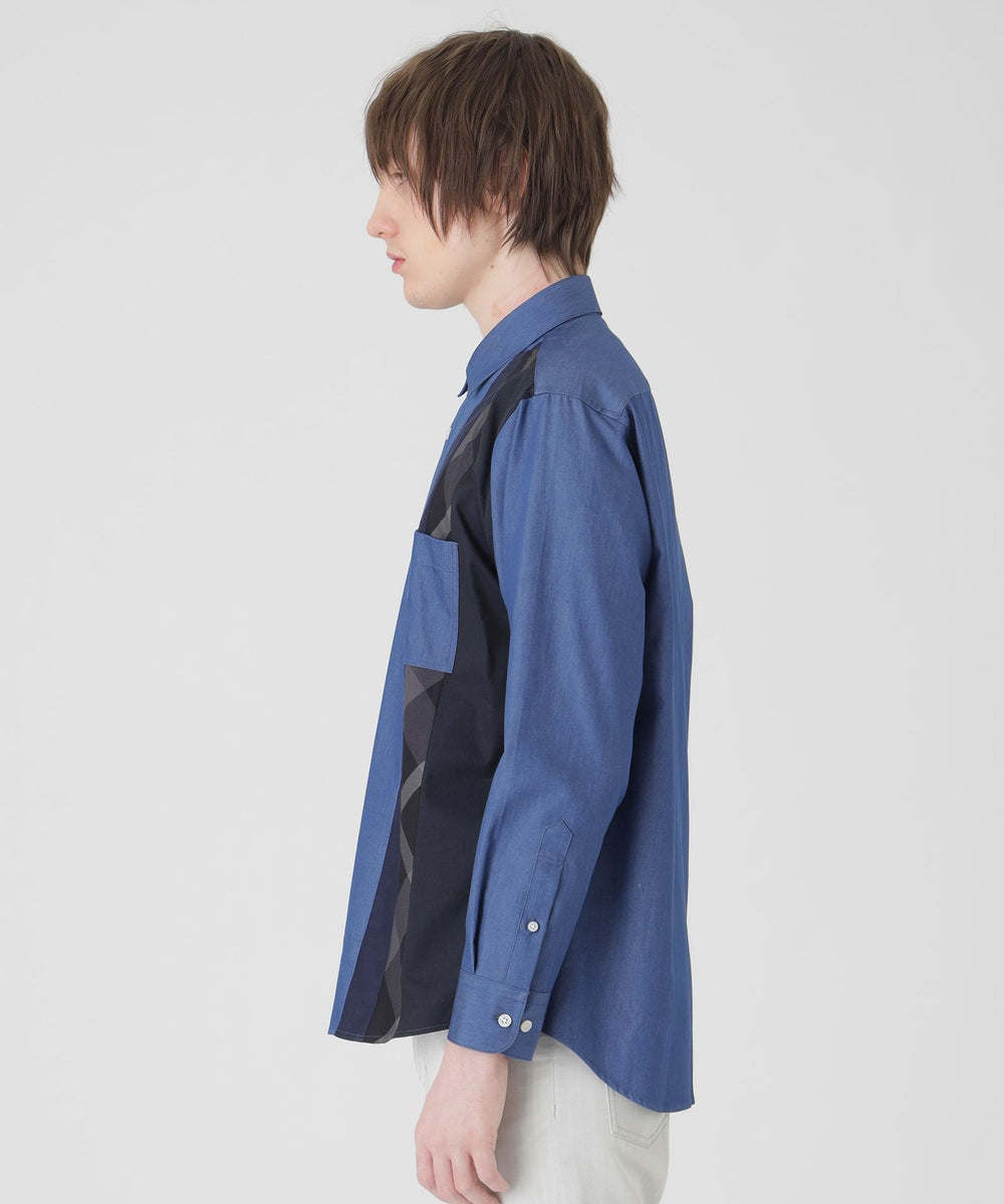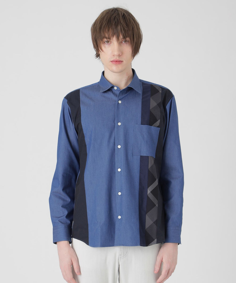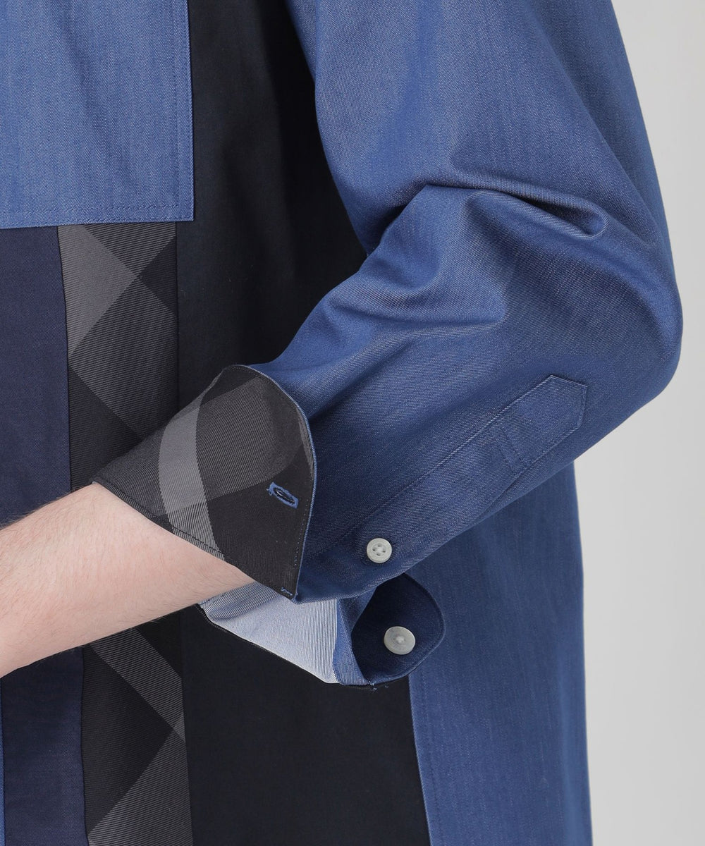 フロントをパッチワーク調に切り替えたデニム調のシャツ。一部にトーナルカラー(同系色)のクレストブリッジチェック柄を使用する事で、ブラックレーベルならではの一着に。トレンド感のあるリラックスシルエットを採用しています。
