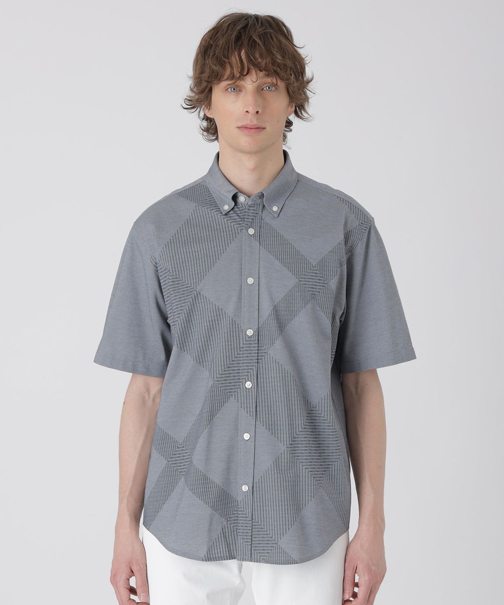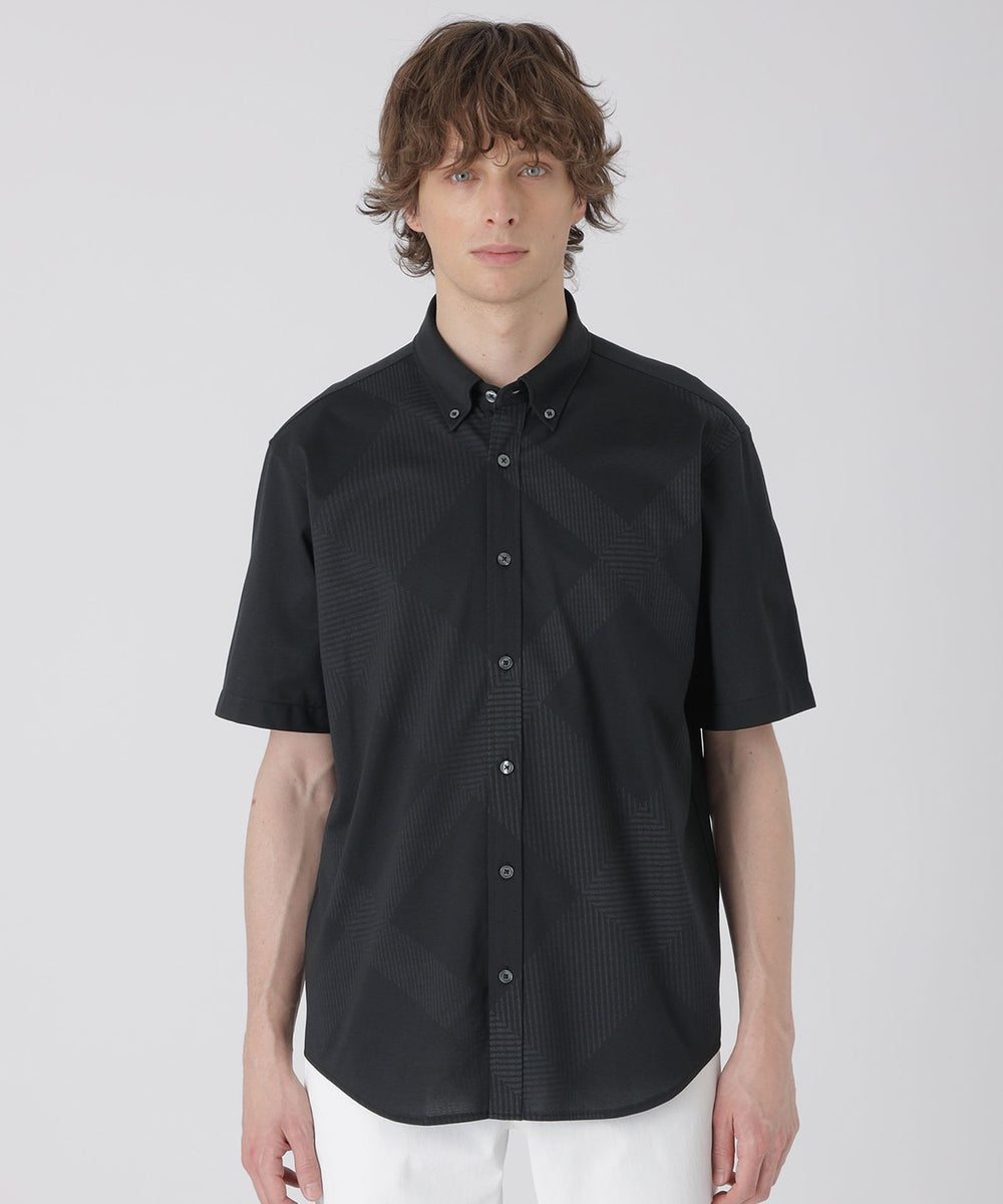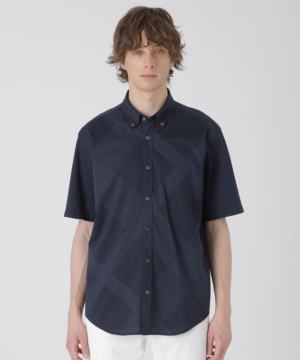 【シャドーチェックが上品に映える、着回し自在のジャージー半袖シャツ】