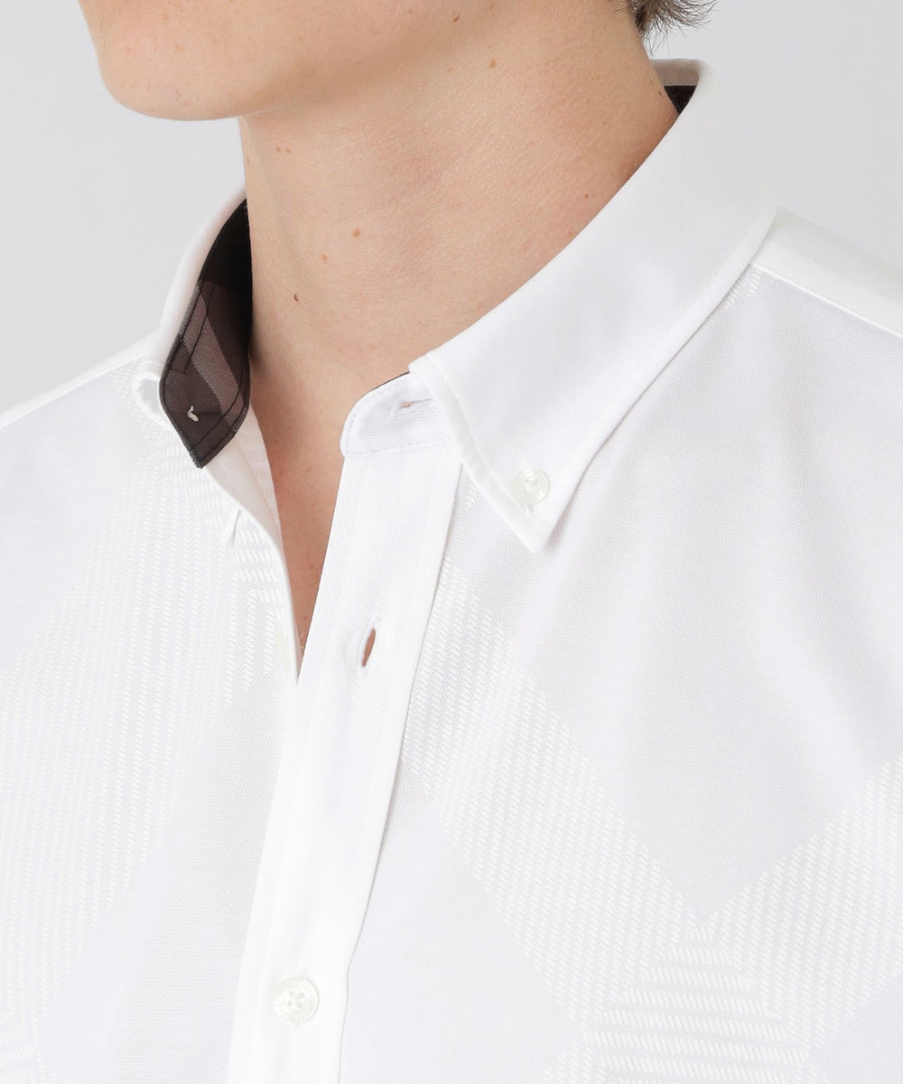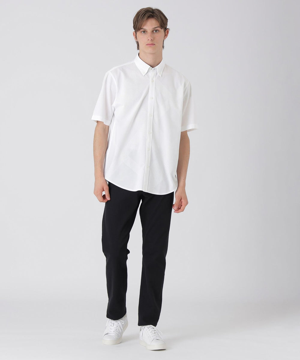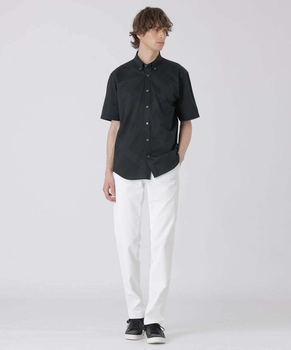 【シャドーチェックが上品に映える、着回し自在のジャージー半袖シャツ】