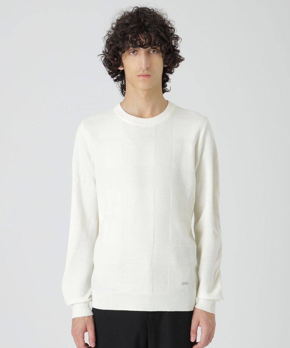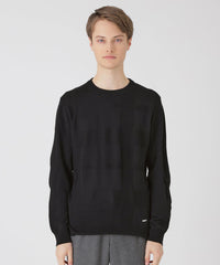 - シャドーチェッククルーネックニット
