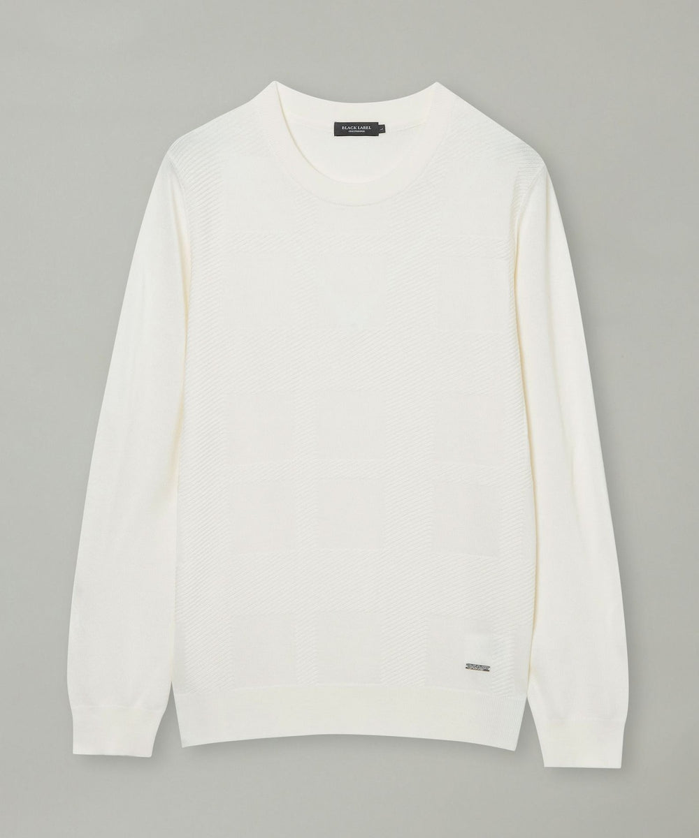 ハイゲージで編み上げたクルーネックニット。シャツとの相性も抜群で、様々なコーディネートにインナーとしても映える冬にマストな一着。身体にフィットしすぎないジャストサイズ設計で、すっきりとした印象に。フロントにはクレストブリッジチェック柄をシャドーで表現。ブラックレーベルならではのシンプルながら存在感あるニットです。