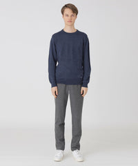 【幅広いコーディネートに合わせられるハイゲージクルーネックニット】