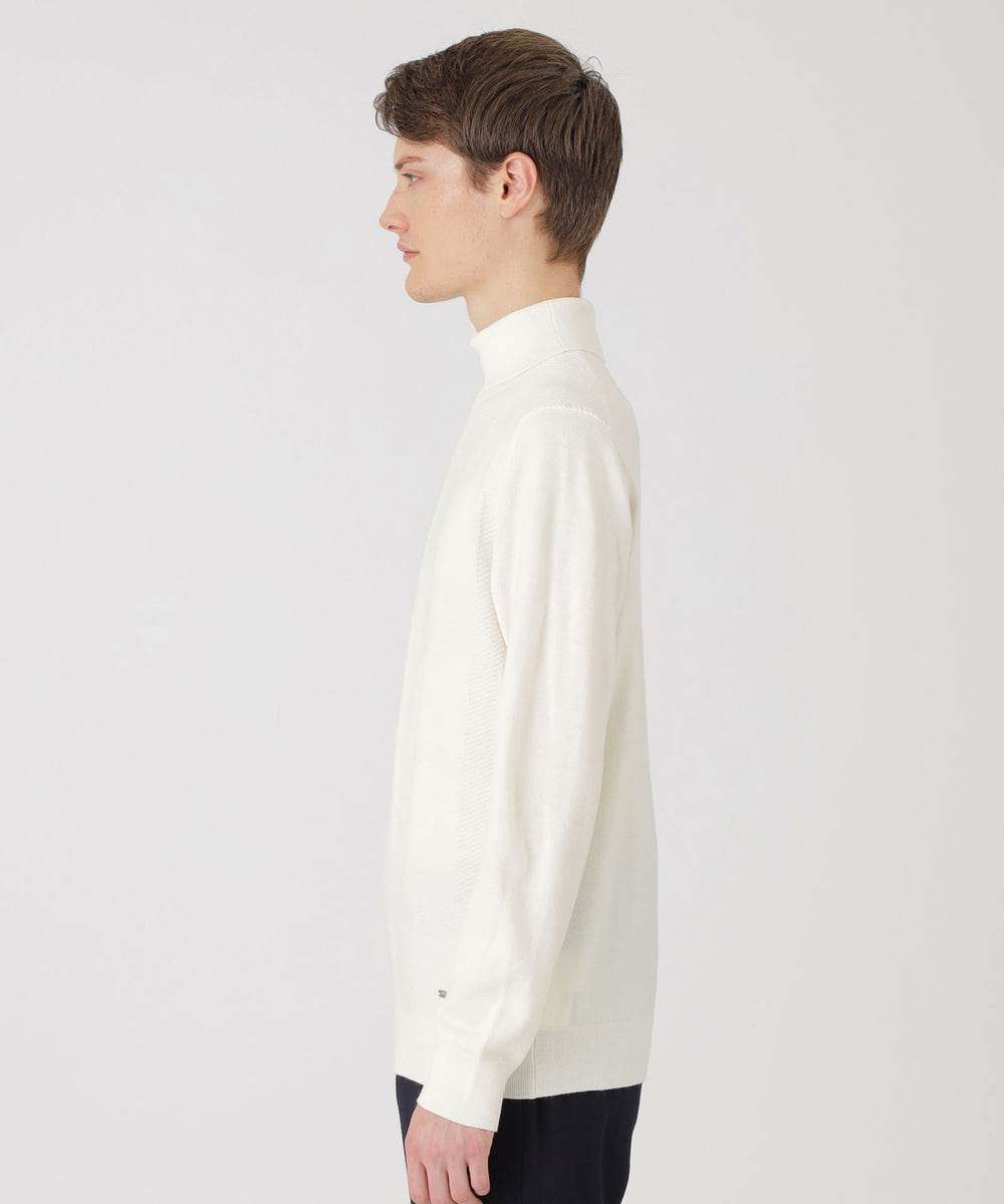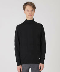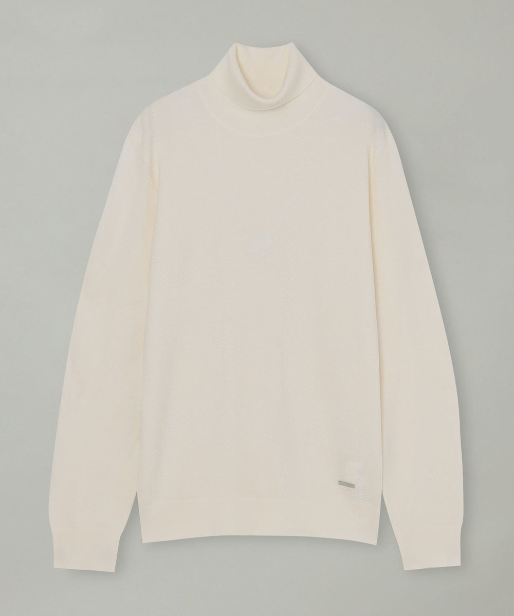 ハイゲージで編み上げたタートルネックニット。様々なコーディネートにインナーとしても映える冬にマストな一着。身体にフィットしすぎないジャストサイズ設計で、すっきりとした印象に。フロントにはクレストブリッジチェック柄をシャドーで表現。ブラックレーベルならではのシンプルながら存在感あるニットです。