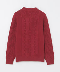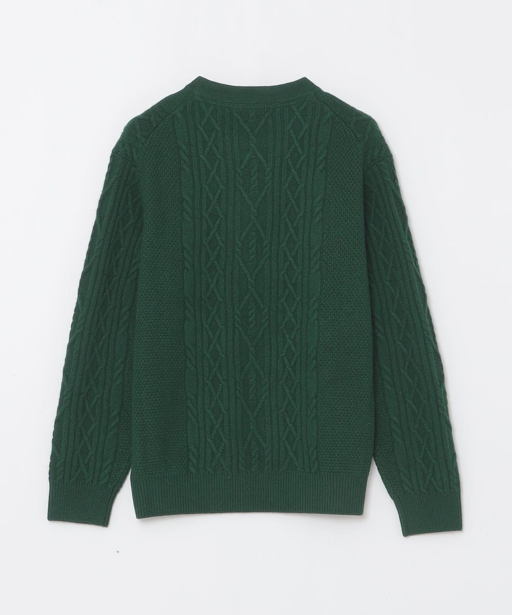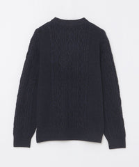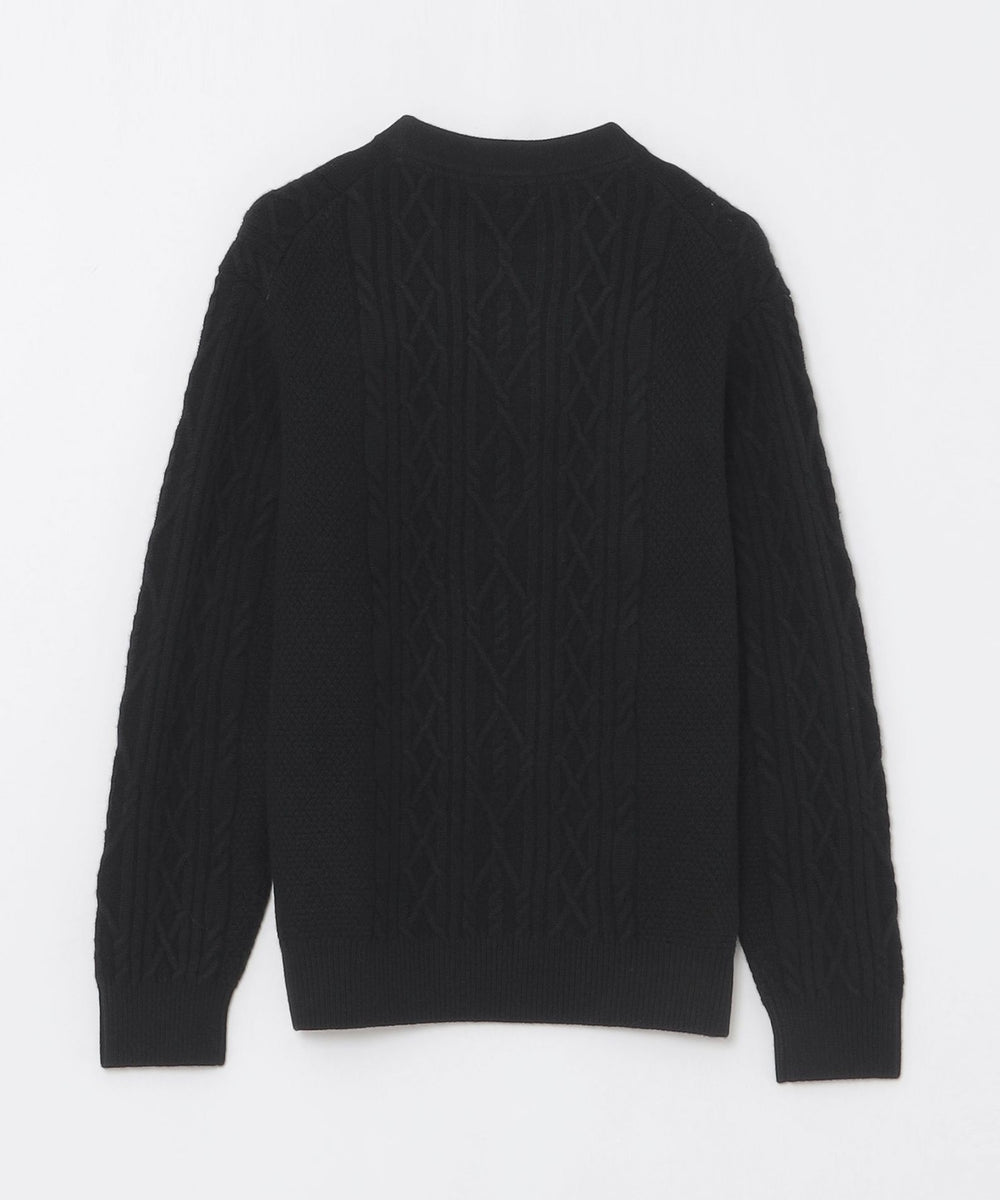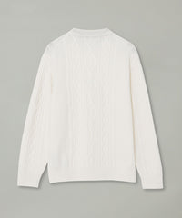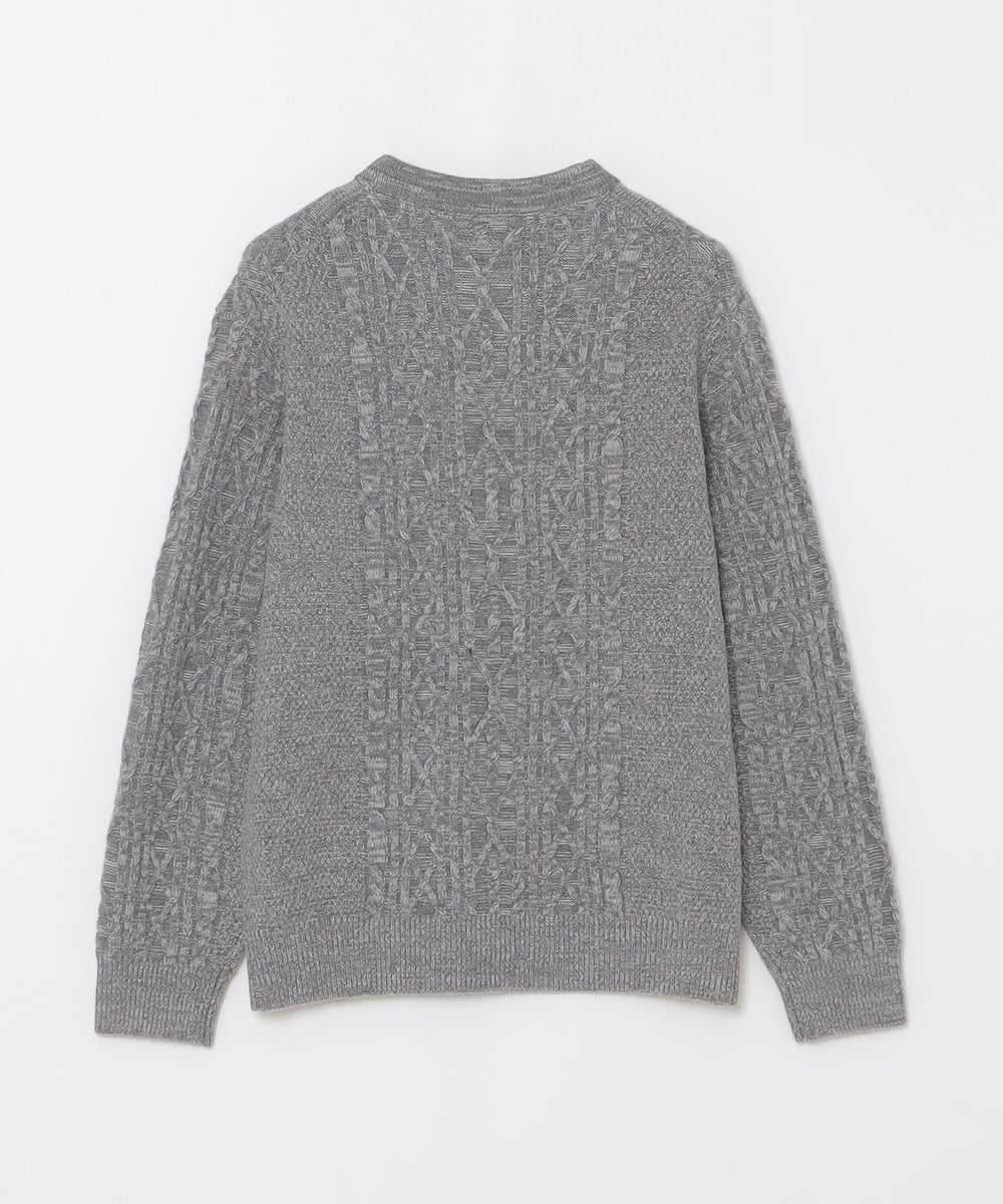 素材には羊毛にカシミヤをブレンドした糸を使用し、しっとりとした手触りと軽い着心地を実現しました。こだわりの編み柄で、嵩高でしっかりとした肉感と立体的な表情が特徴です。軽い着心地が相まって、寒さが増す季節に最適な仕上がりです。