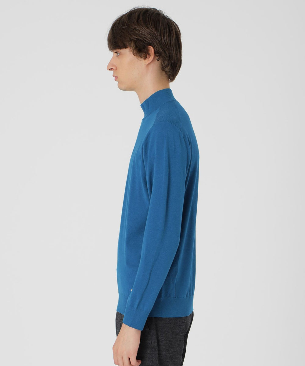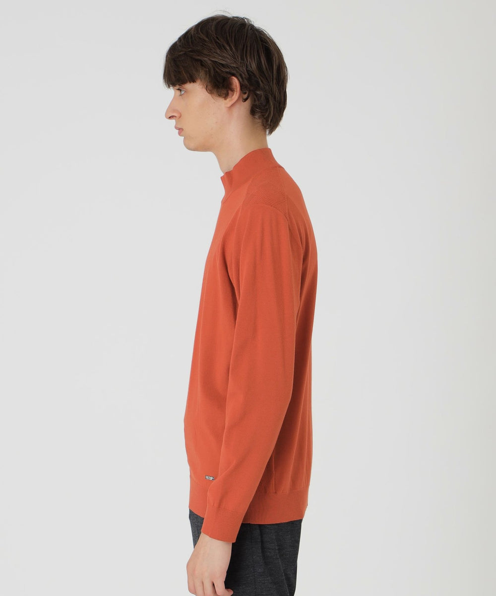 スッキリとしたシルエットに仕上げ、衿はやや高めのハイネックを採用したニット。オトナで上品な見映えはスーツやジャケットのインナーとしても活躍します。オンオフどちらでも対応でき、秋から春まで3シーズン着用できるスマートなデザインのニットです。