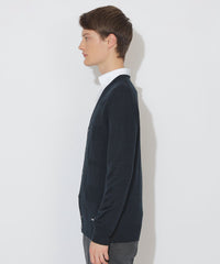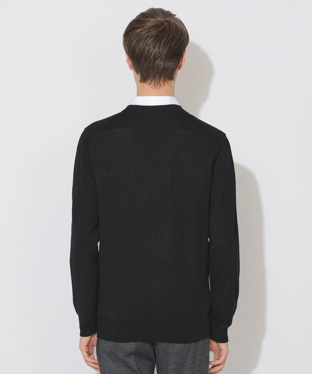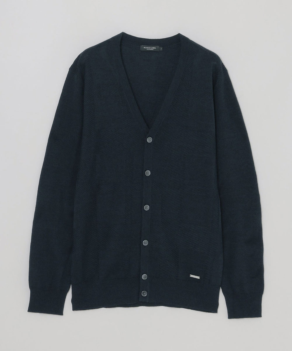 ハイゲージで編み上げたニットカーディガン。様々なコーディネートに映える一着。フロントにはクレストブリッジチェック柄をシャドーで表現。ブラックレーベルならではのシンプルながら存在感あるニットです。