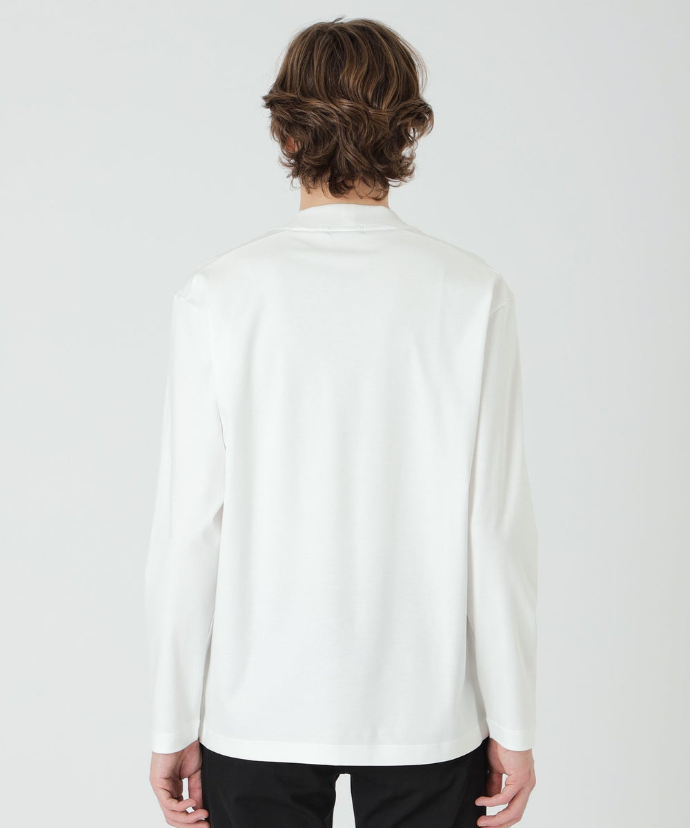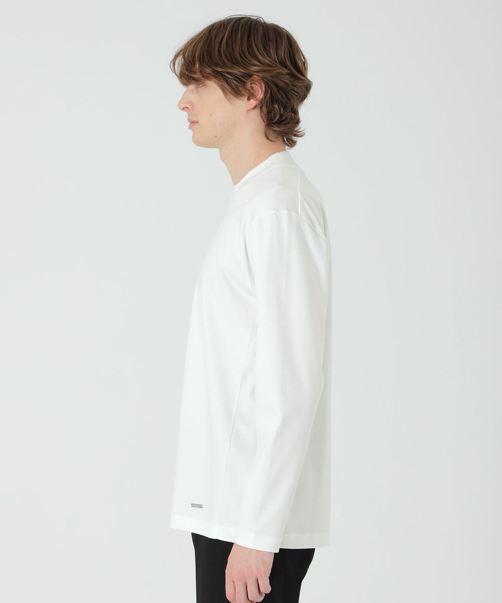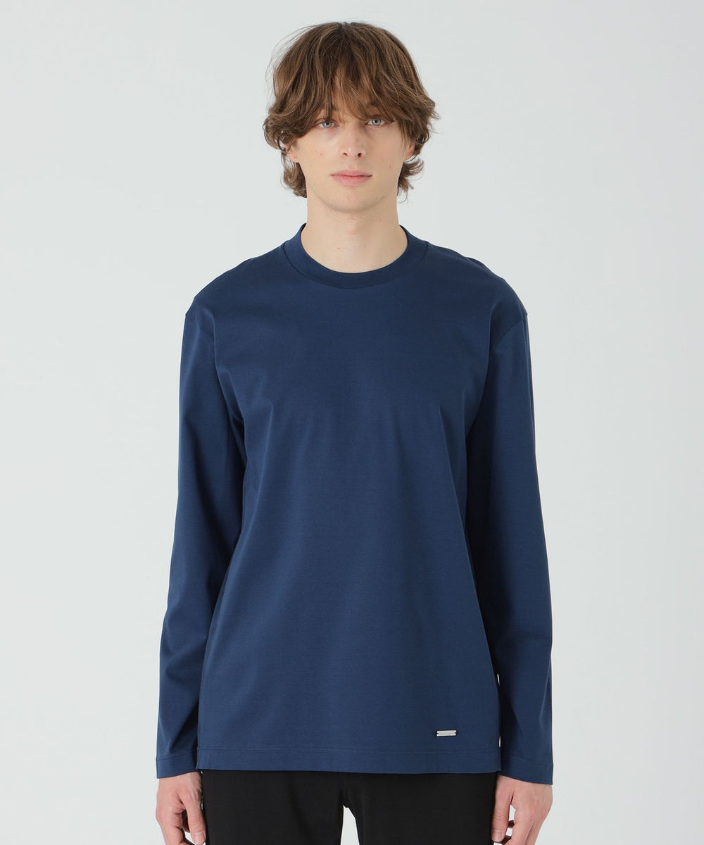 素材には綿のスムース生地を使用。程良い肉感で透けの少ない厚みが特徴。シルケット加工を施し、しなやかで上品な微光沢をプラスしています。