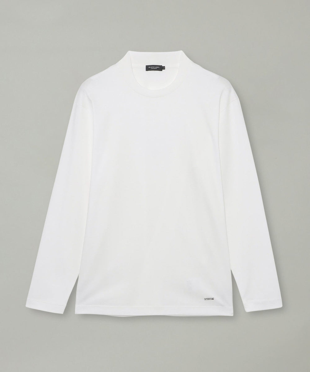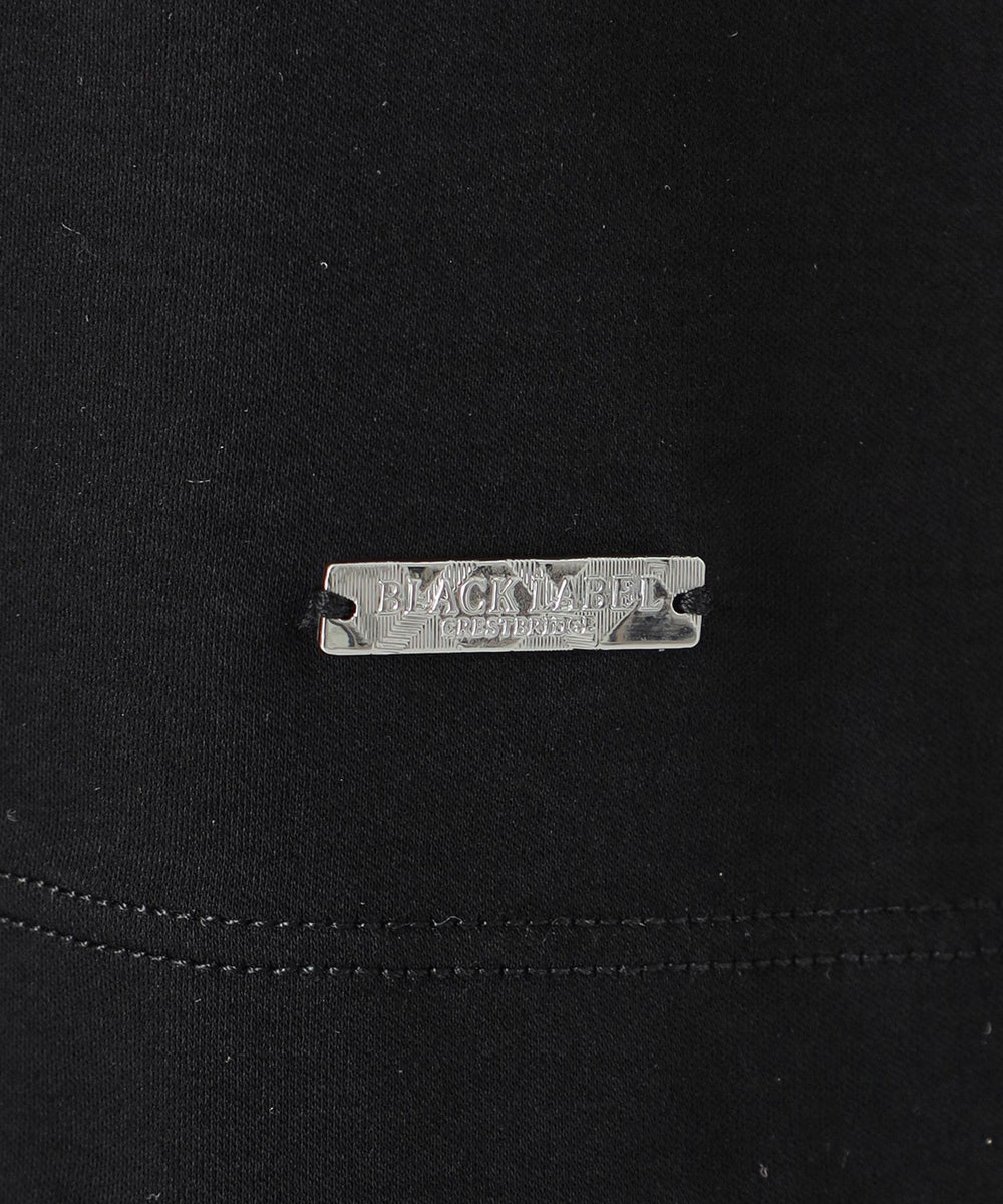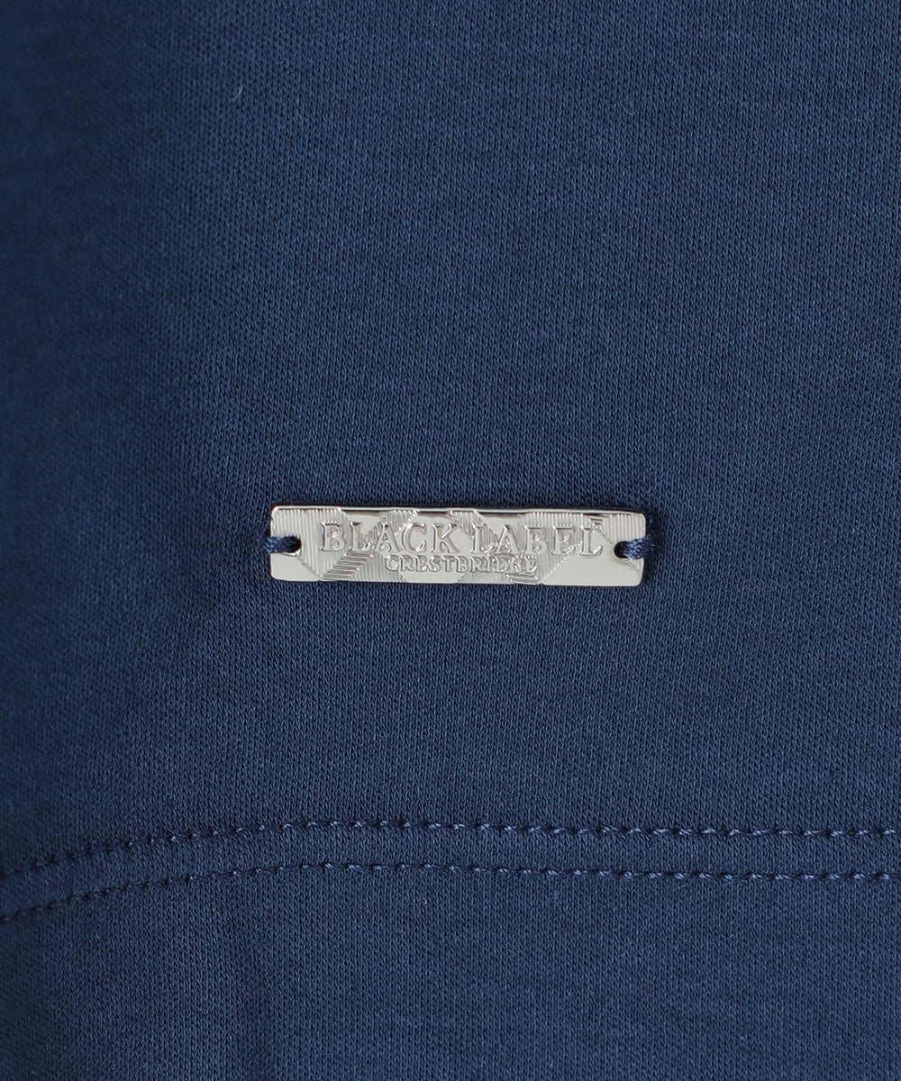 ジャケットのインナー合わせに開発されたキレイ目カットソー。衿の後ろ側をやや高く設定することでジャケットの衿登りとのバランスを美しく保ちつつ、皮脂による衿裏汚れも防ぐ仕様に。背幅を胸幅よりも広く設定することで、人体の形に沿った立体的なパターンを作り出しています。さらに脇部分を切り替える事で、より立体的な設計に。脇部分にシャドーのクレストブリッジチェック柄をあしらうことでブラックレーベルらしさを演出しています。肩傾斜やシルエットはインナーとしてもたつかないようにスッキリと仕上げています。左裾のロゴ入りのシャドーのチェック柄メタルプレートが高級感を演出します。