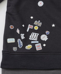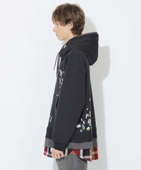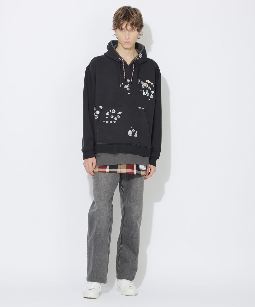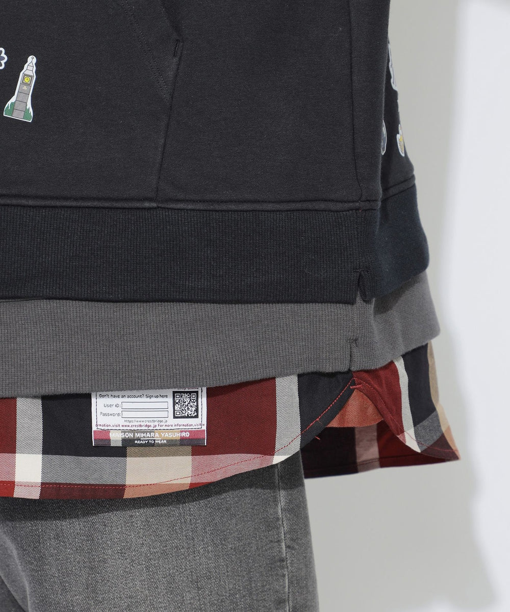 メゾンミハラヤスヒロとのスペシャルコラボレーションによる、オーバーサイズのフェイクレイヤードフーディー。フードと裾にレイヤードデザインを取り入れ、裾部分にはブラックレーベルを象徴するクレストブリッジチェックシャツをドッキング。フロントと背面裾には、子供がシールを貼って遊んだような遊び心あるシール風プリントを配置。ブリティッシュカルチャーをモチーフにしたグラフィックで、アート性とユーモアを兼ね備えた印象的なデザインに仕上げています。存在感のあるグラフィックと構築的なレイヤードデザインが特徴の、特別感あふれる一着です。限定の3種類のコラボネームは、メゾンミハラヤスヒロのネームをベースにブラックレーベルのためだけに開発したスペシャルネームです。「Maison MIHARA YASUHIRO(メゾン ミハラヤスヒロ)」・・・ デザイナー・三原康裕が立ち上げたブランド。既存の枠にとらわれない発想や深く踏み込んだデザインワークを服やシューズに落とし込み、「ストイックでありながら遊び心のある服」をテーマに、国内外問わずそのデザインは注目を浴び続けています。
