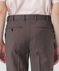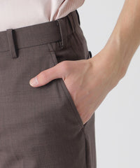 ビジネスシーンだけでなく、キレイ目カジュアルとしても活躍する汎用性の高いアイテムです。膝裏の裏地を省くことで、湿気の多い日でも体にまとわりつく現象を軽減し、快適にご着用頂けます。ウェストサイド部分にゴムシャーリングを施す事で、シャープな雰囲気を維持しながらも履き心地を追求したデザインです。