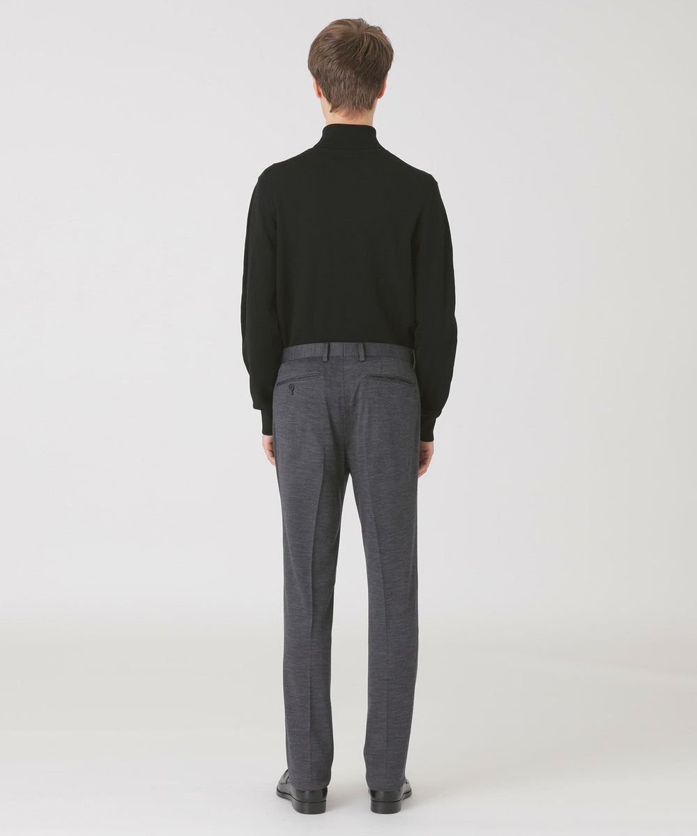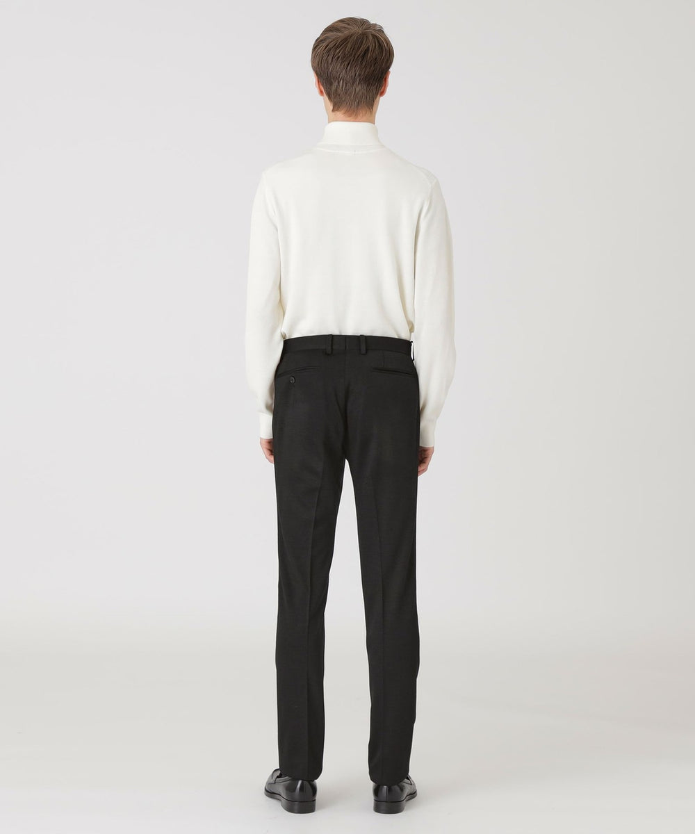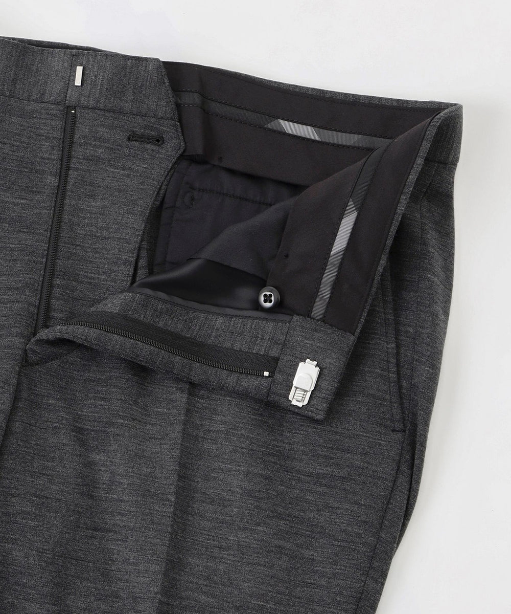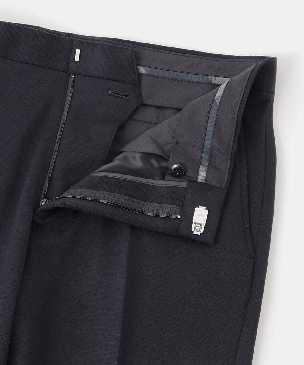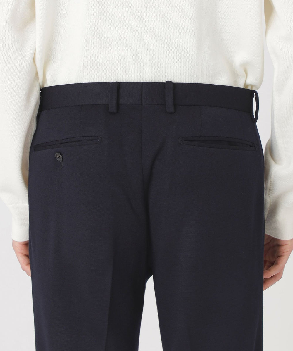 素材には、イタリアの高級服地メーカーREDA社のREDA ACTIVEウールジャージーを使用。羊毛100%の素材で、非常に美しい光沢と滑らかな風合いが特徴です。ジャージー素材を使用しているため、ビジネスシーンに限らず、様々なシーンで快適にご着用いただける一着となっています。ストレッチ性の高さに加え軽量な為、ストレスフリーでの着用が可能です。同素材にてジャケットも展開しており、セットアップとしてもご着用頂けます。
