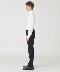 羊毛100%のジャージー素材を使用したトラウザーズ。シャープな印象を持たせる細身なシルエットで、ビジネスシーンだけでなく、キレイ目カジュアルとしても活躍する汎用性の高いアイテムです。アイコニックなクレストブリッジチェックをマーベルトに使用することで、付加価値の高い1着に仕上げています。