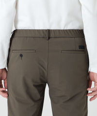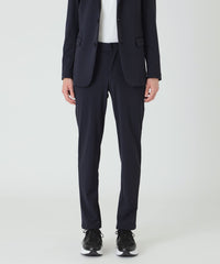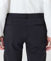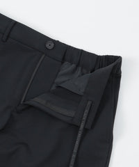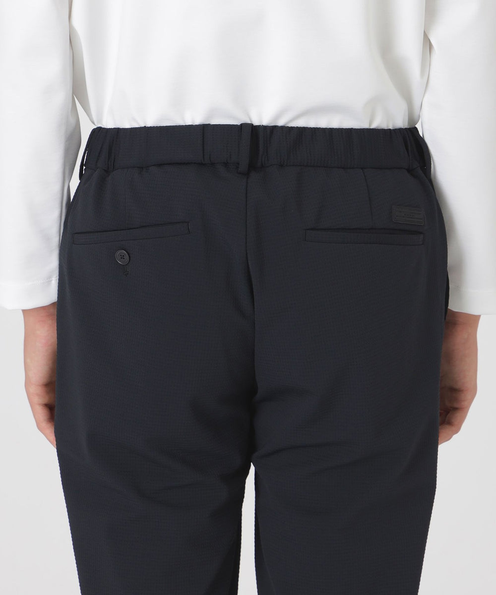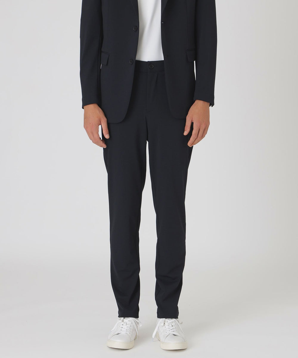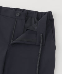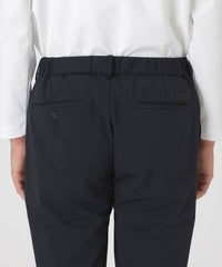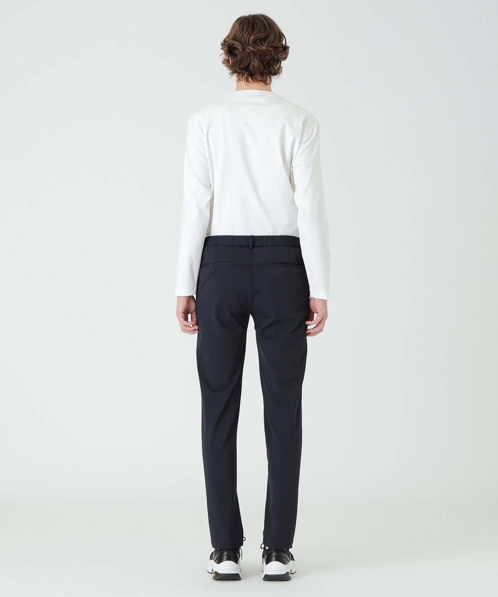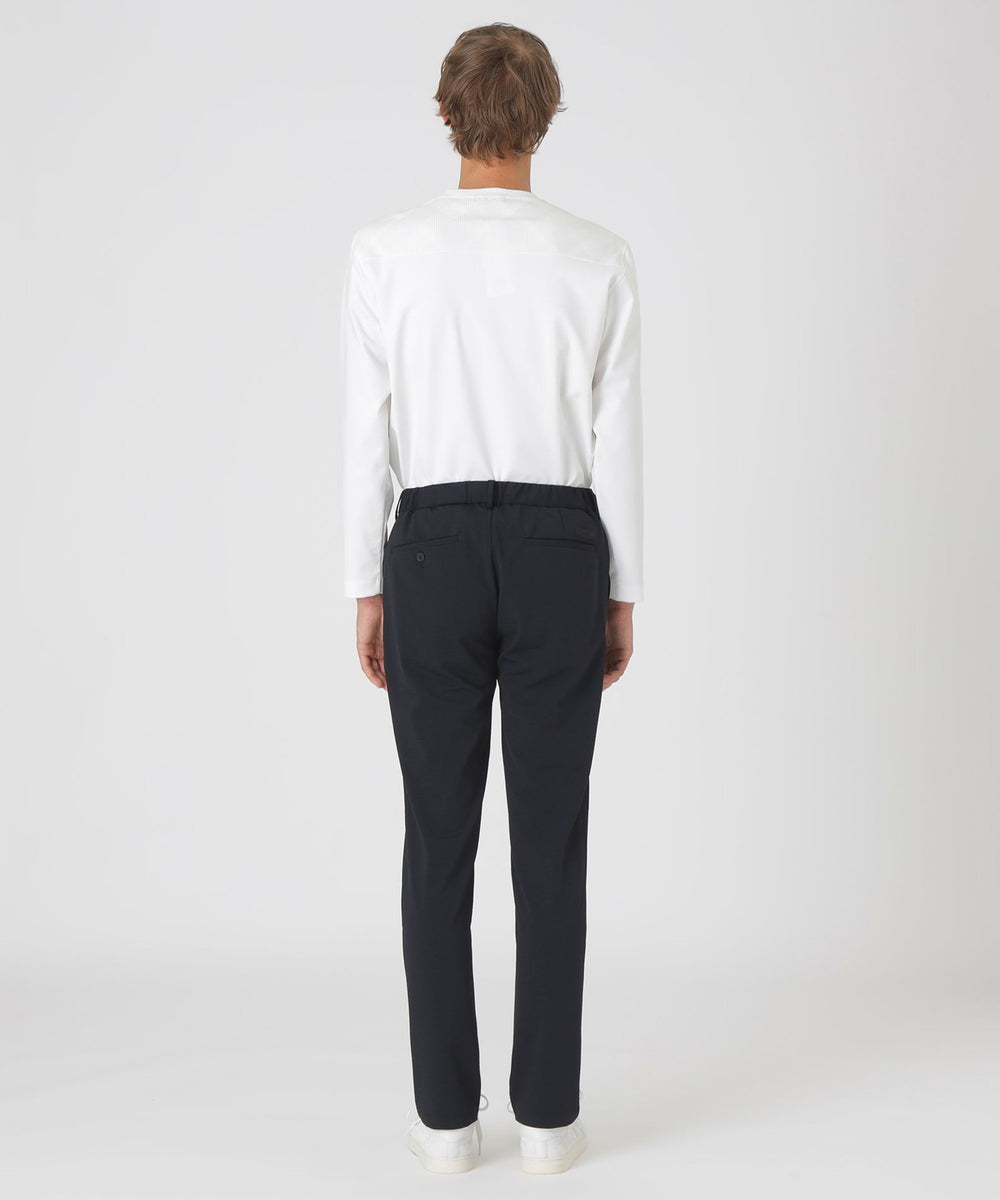 薄地軽量ナイロントリコット素材を使用したイージートラウザーズです。シャープな印象を持たせる細身のシルエットがポイント。ウエスト部分にはゴムシャーリングを施し快適な履き心地に仕上げています。
