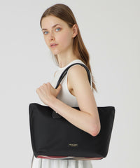 ナイロンの控えめな光沢感が、カジュアルかつ上品な雰囲気のミドルサイズのナイロントート。