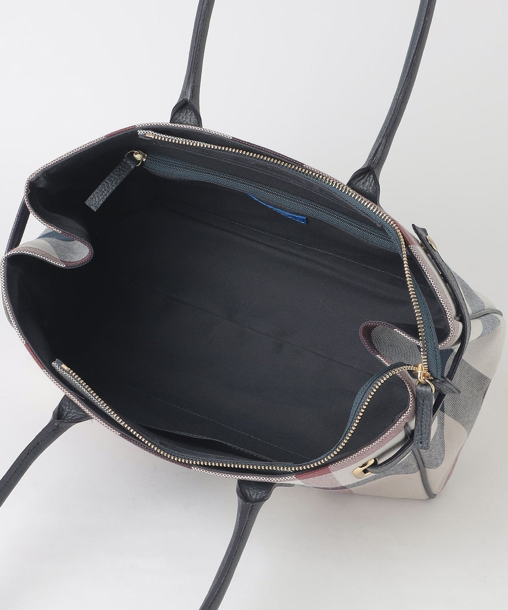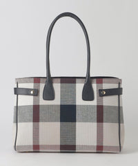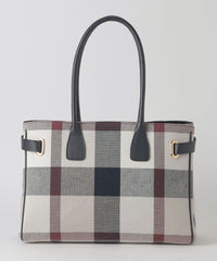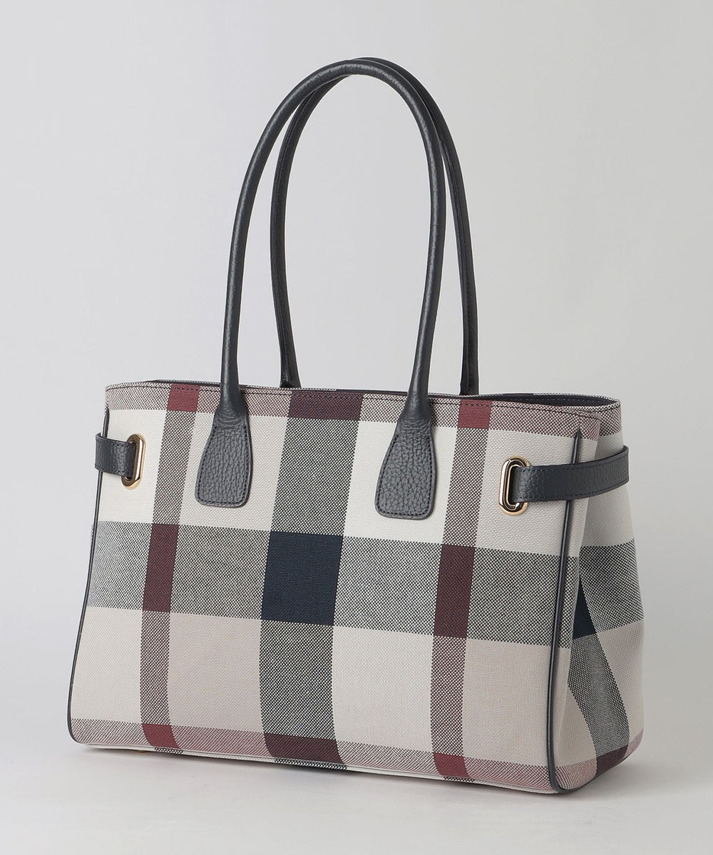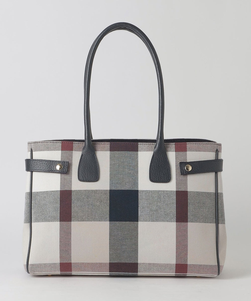 クレストブリッジチェックキャンバス×レザーの異素材コンビネーションバッグです。