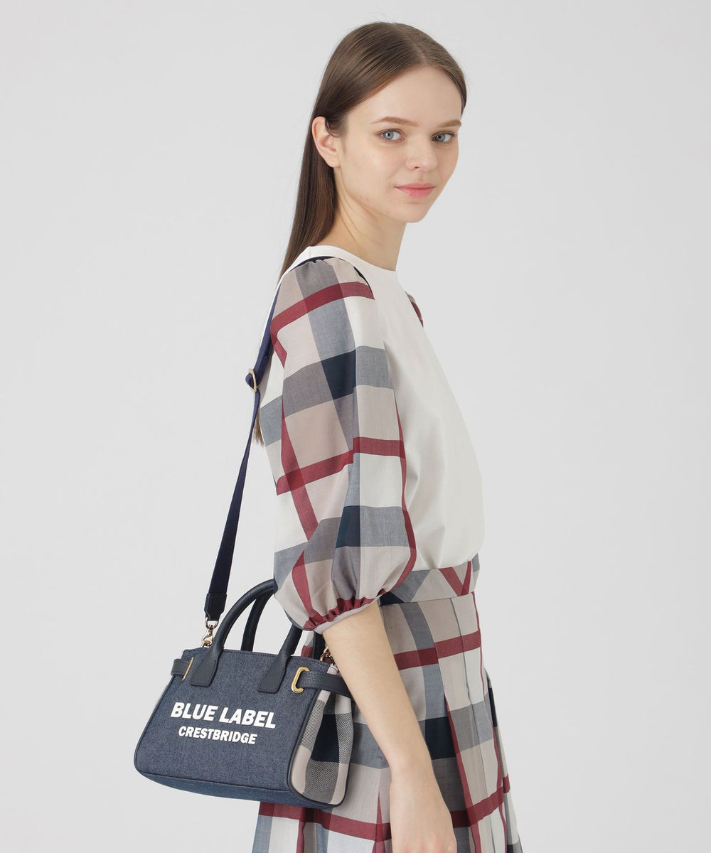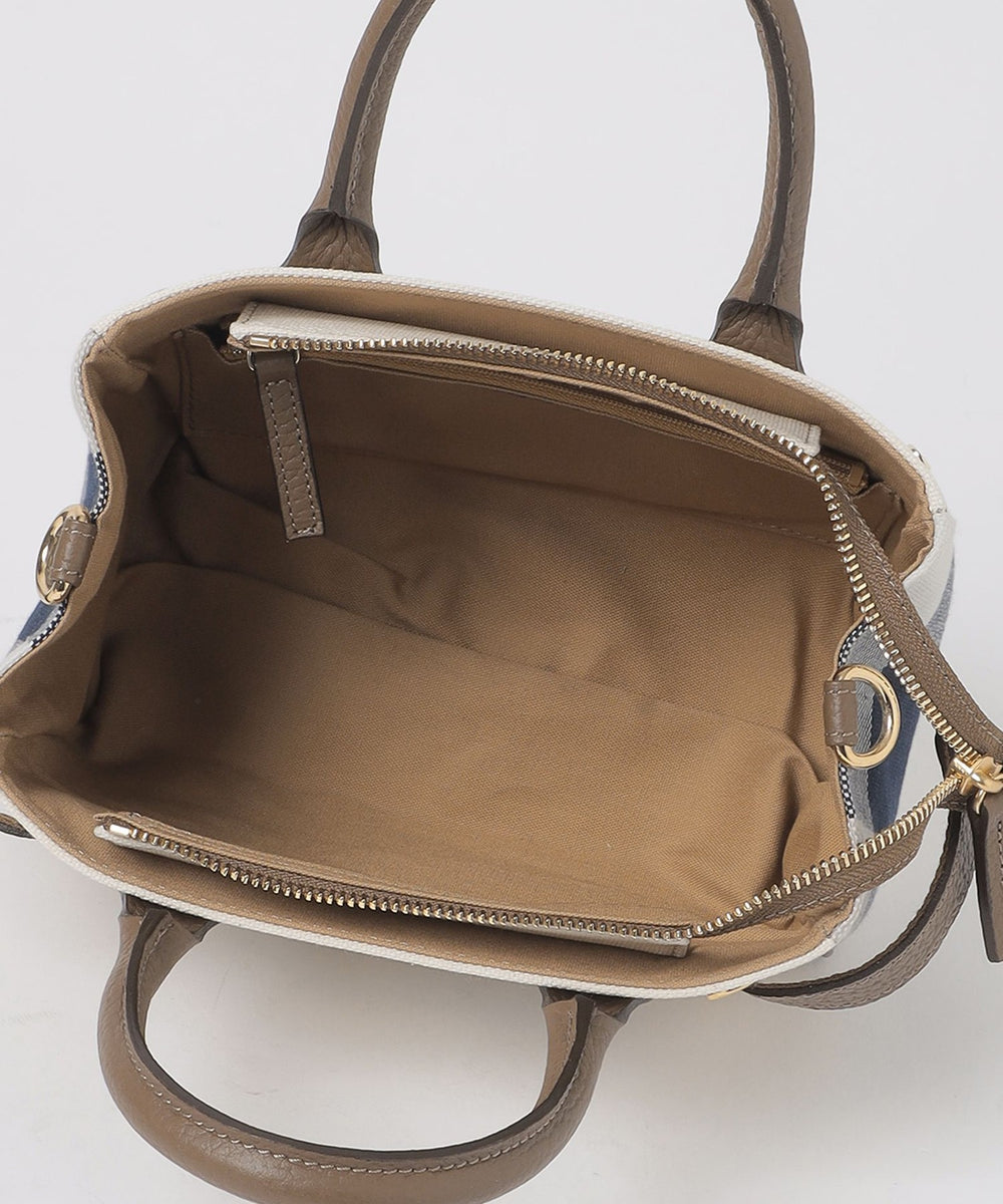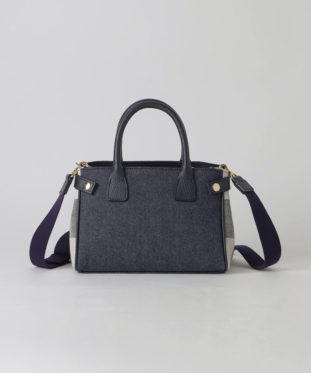 両サイドのハトメとベルトがアクセントのミニトートバッグです。
