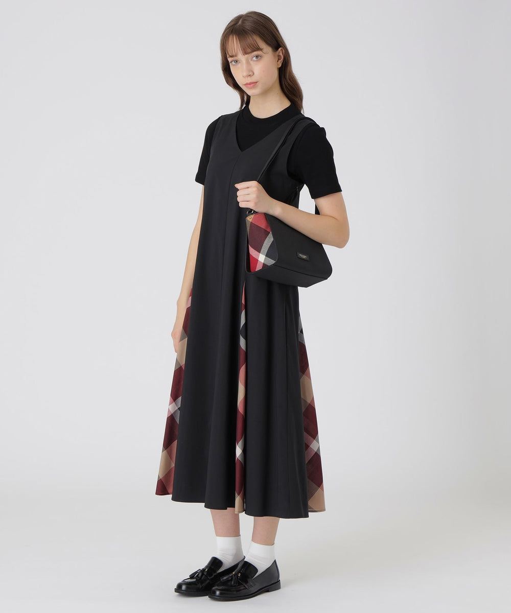 ◆無地×チェックのショルダーバッグ