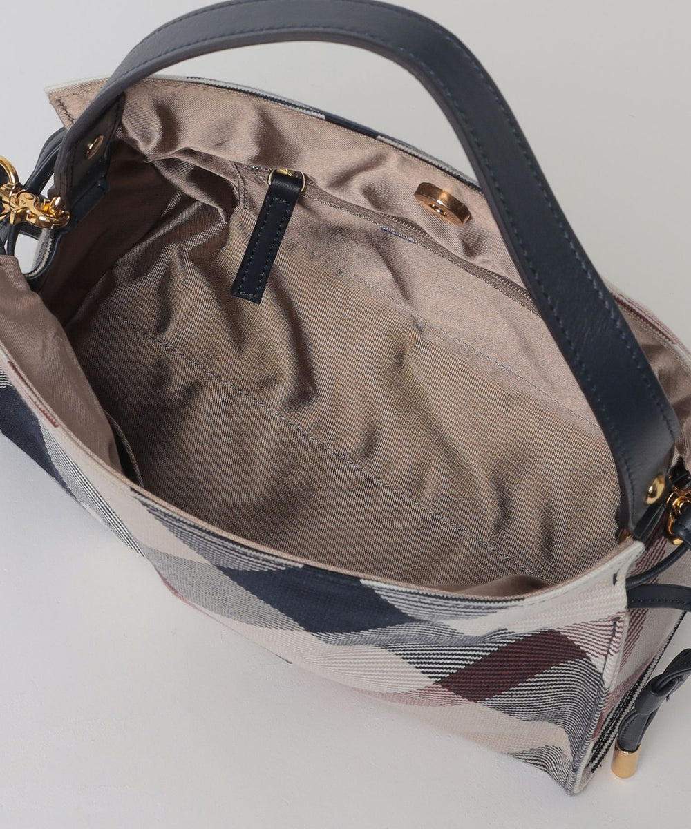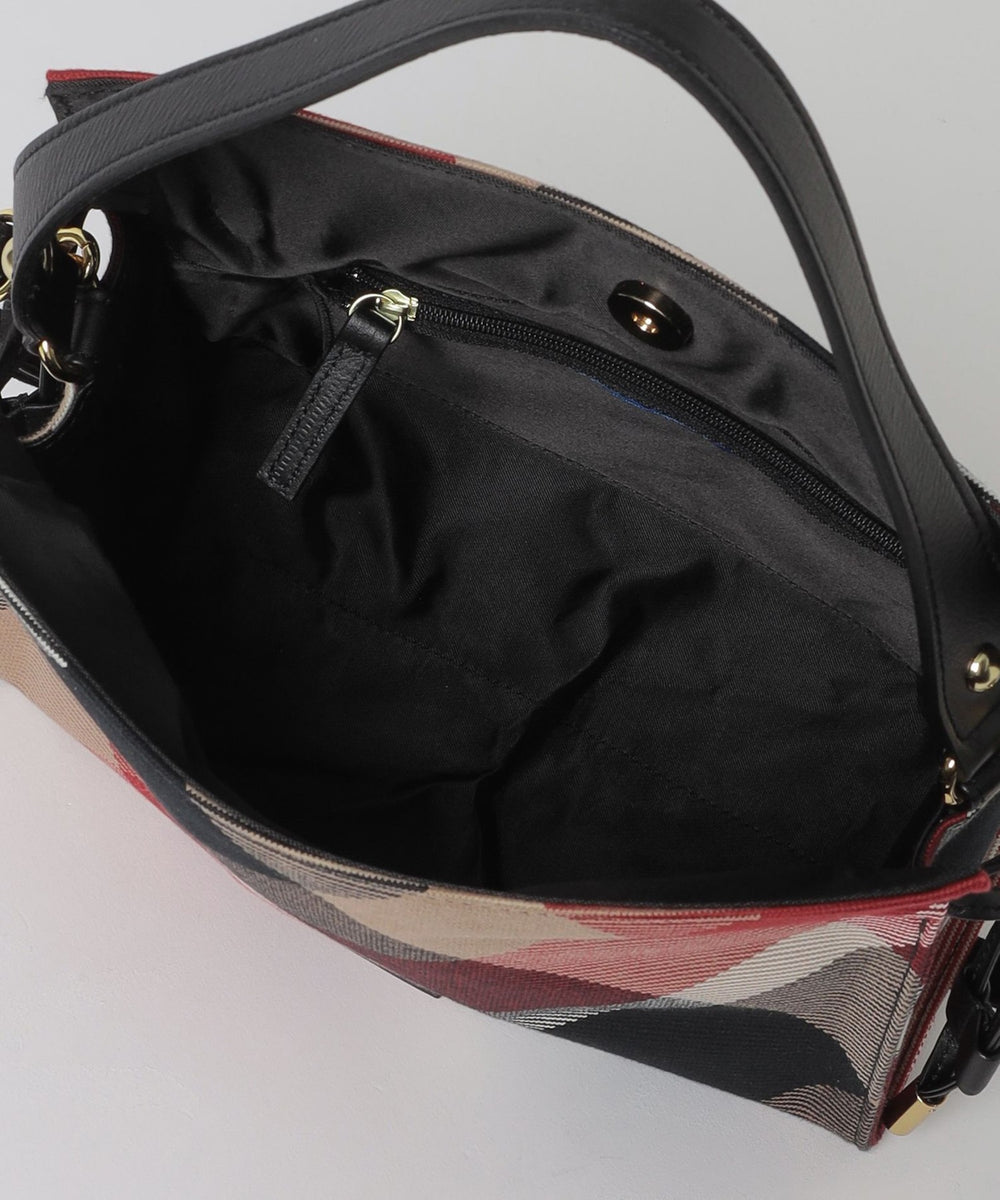 ◆コーディネートのアクセントになるクレストブリッジチェック柄ショルダーバッグ