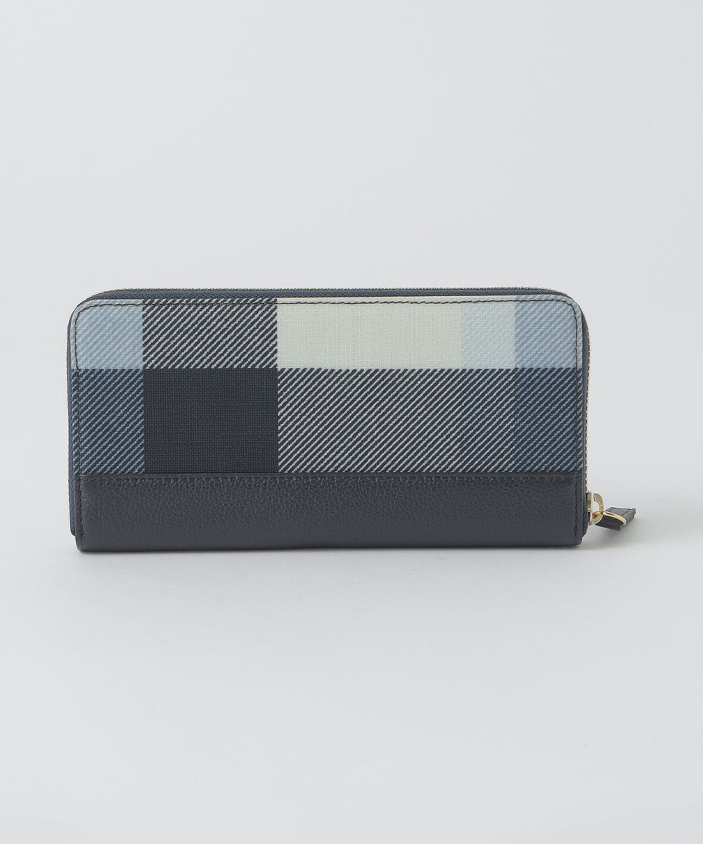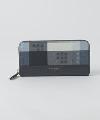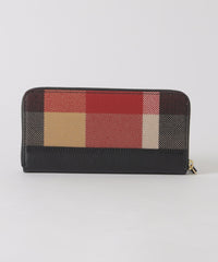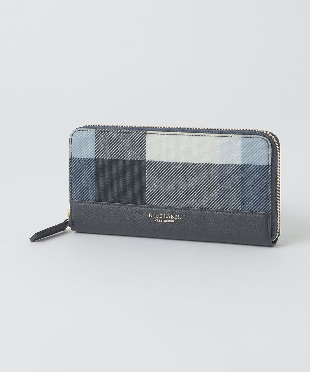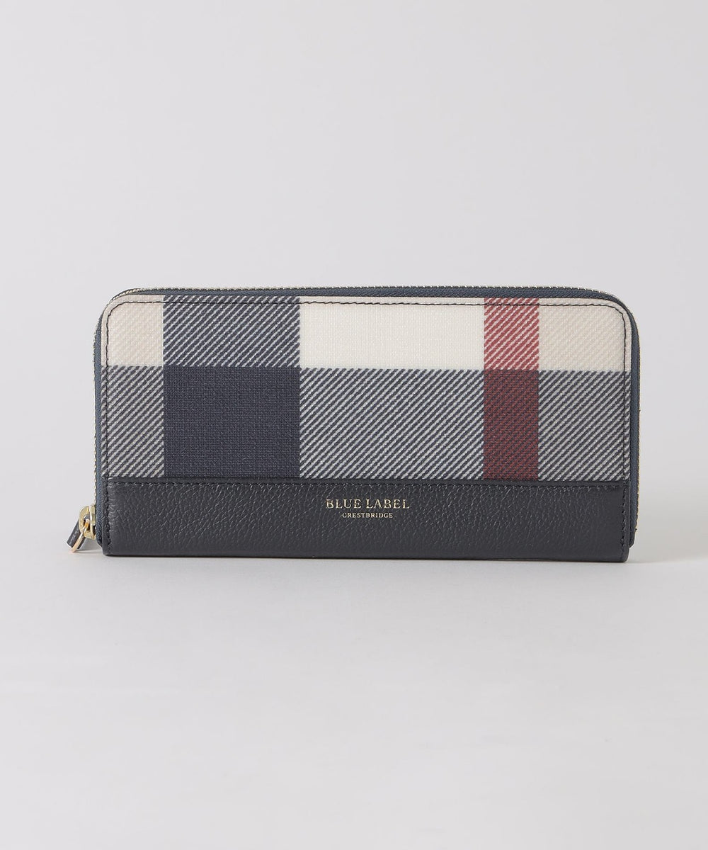 本体下部のレザーがアクセントのクレストブリッジチェック柄長財布です。