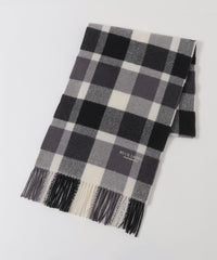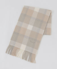 定番のクレストブリッジチェック柄のカシミヤ混マフラー。