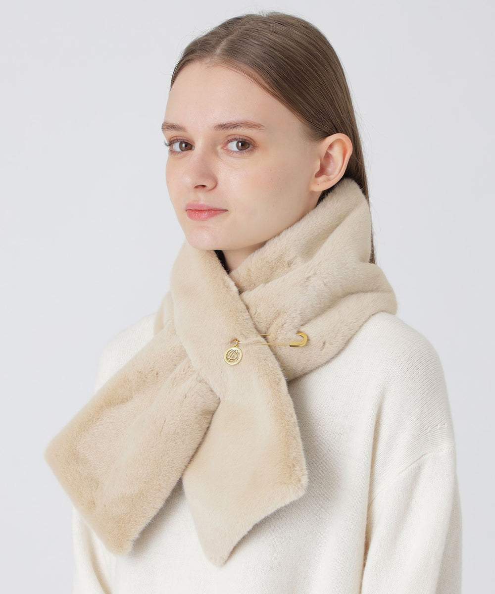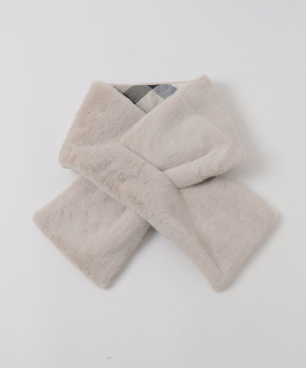 裏地のクレストブリッジチェックがポイントのフェイクファーティペットです。