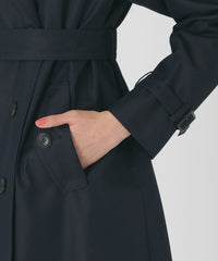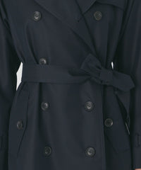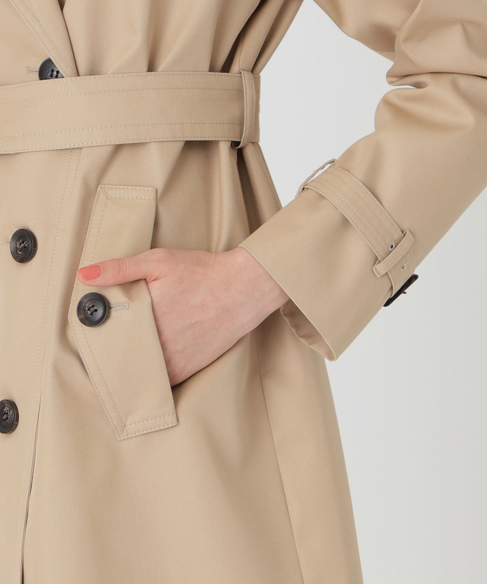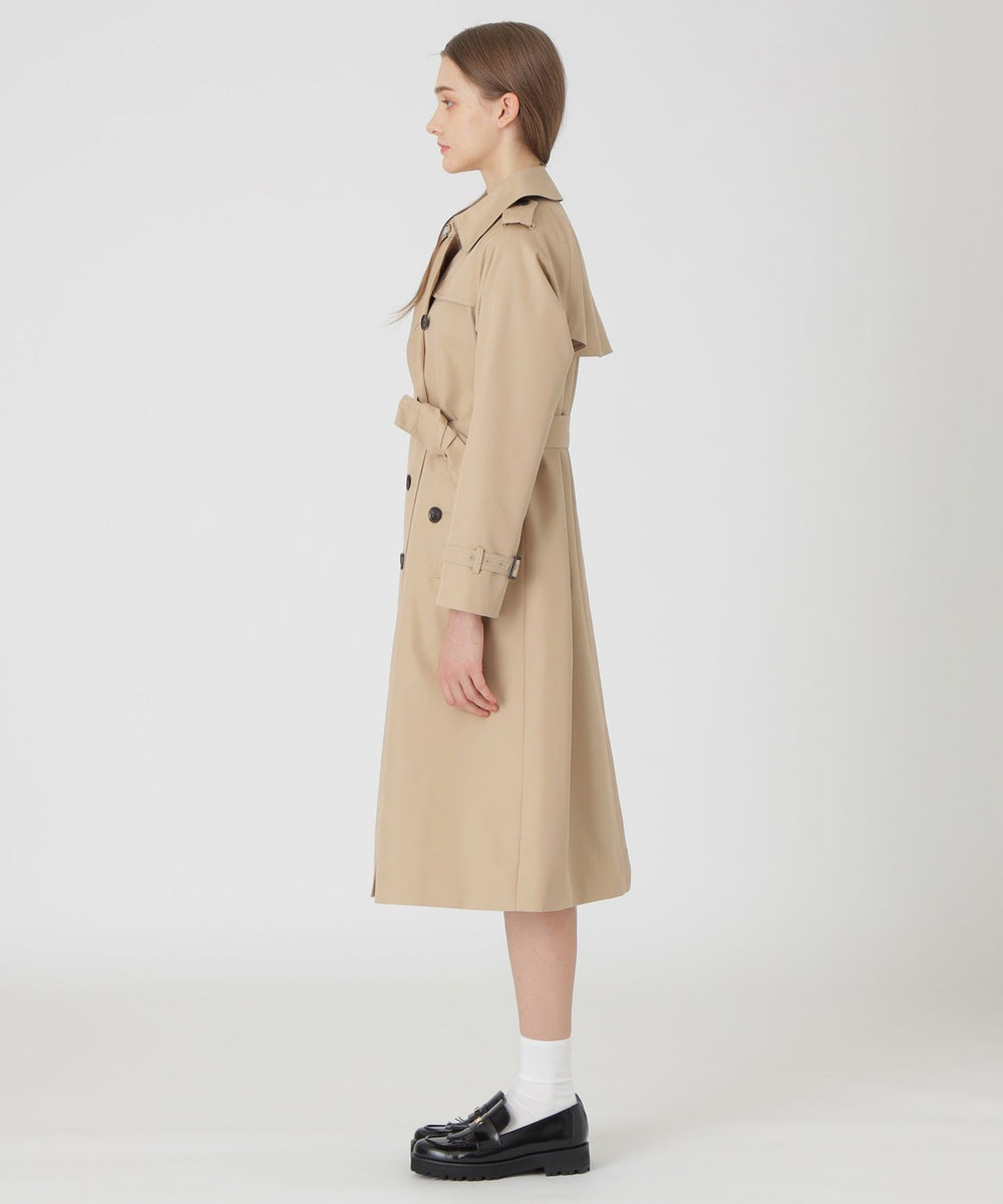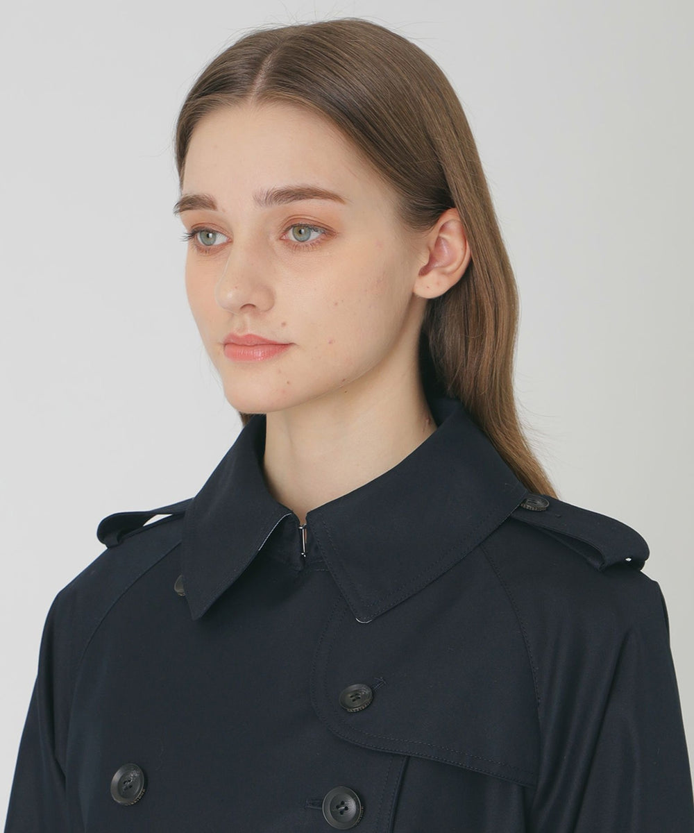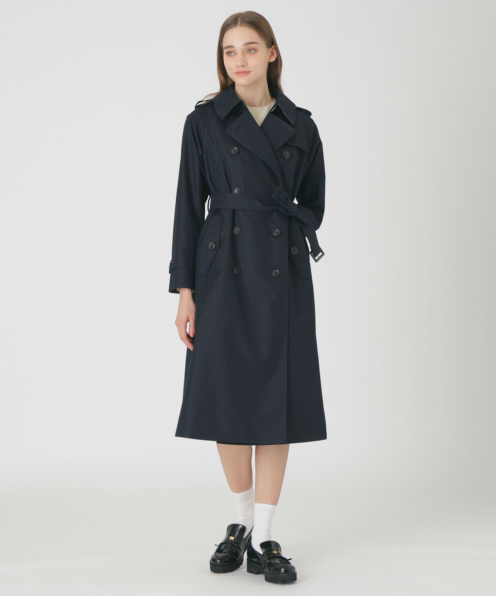 クラシカルな風格を感じるダブルブレストトレンチコート。