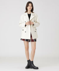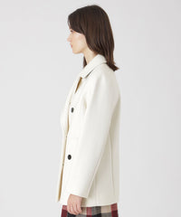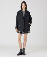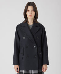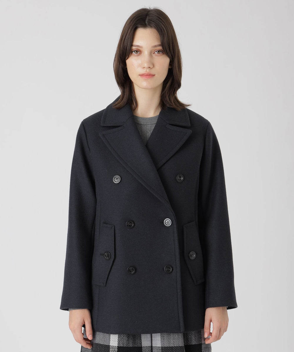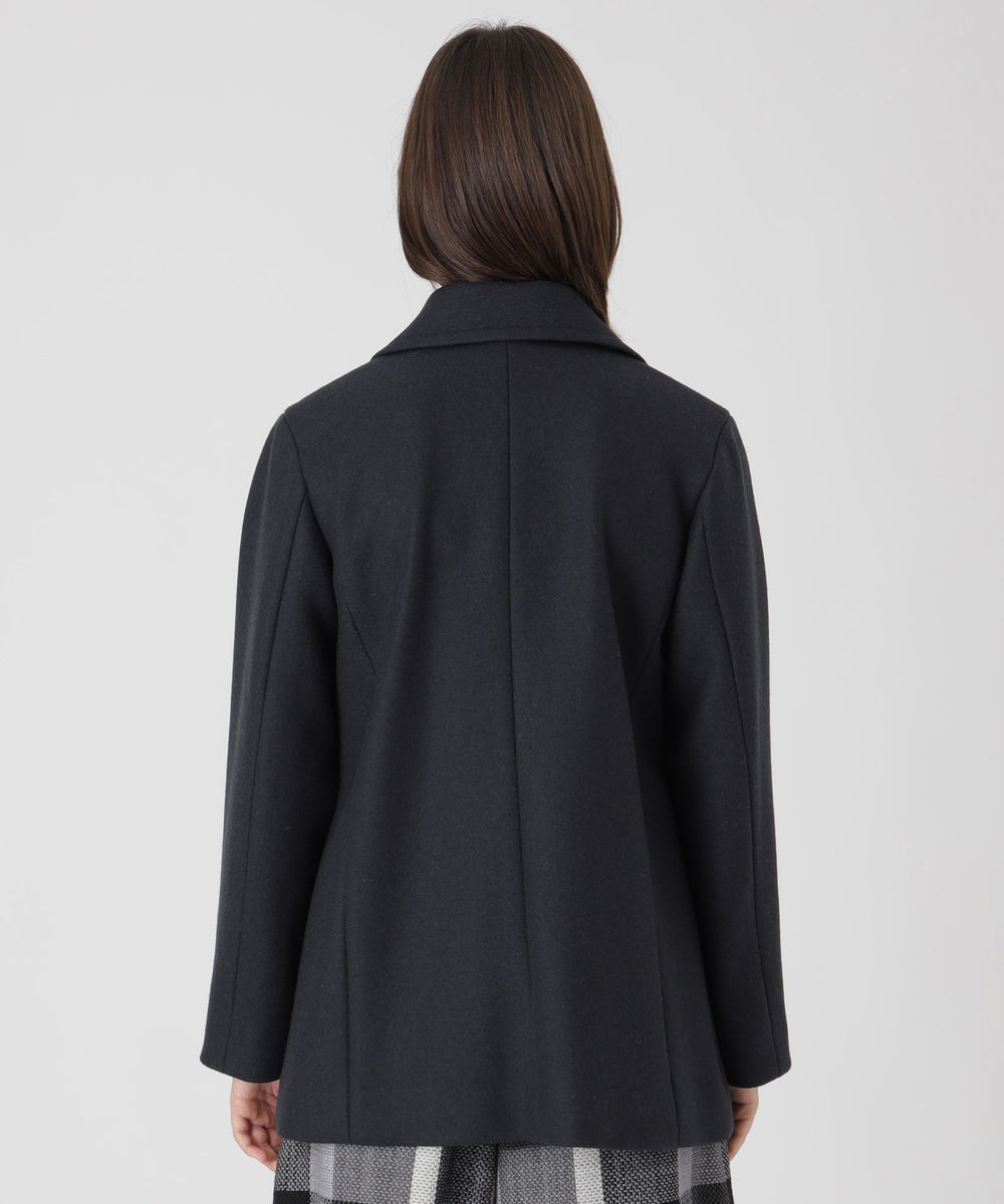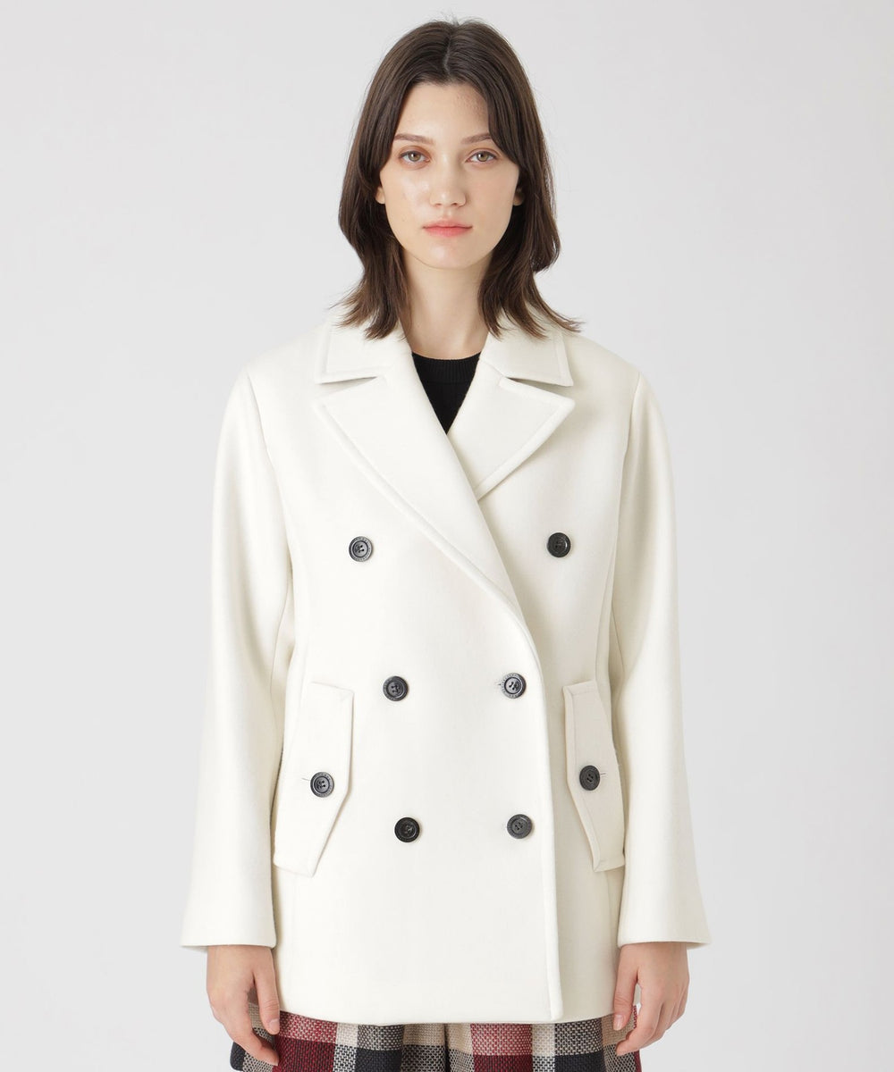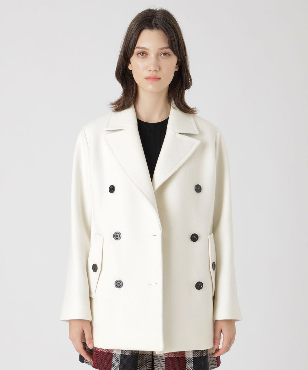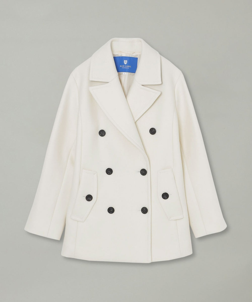 レーヨンストレッチケーブルニット(55N06636)とクレストブリッジチェックスラブプリペラキュロット(55R04635)に羽織るのがブルーレーベルらしいおすすめコーディネートです。