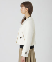 ◆ショート丈でさっと羽織れるノーカラージャケット