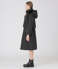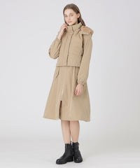 上品な光沢のドレスコートは、程よいフィット&フレアシルエットです。