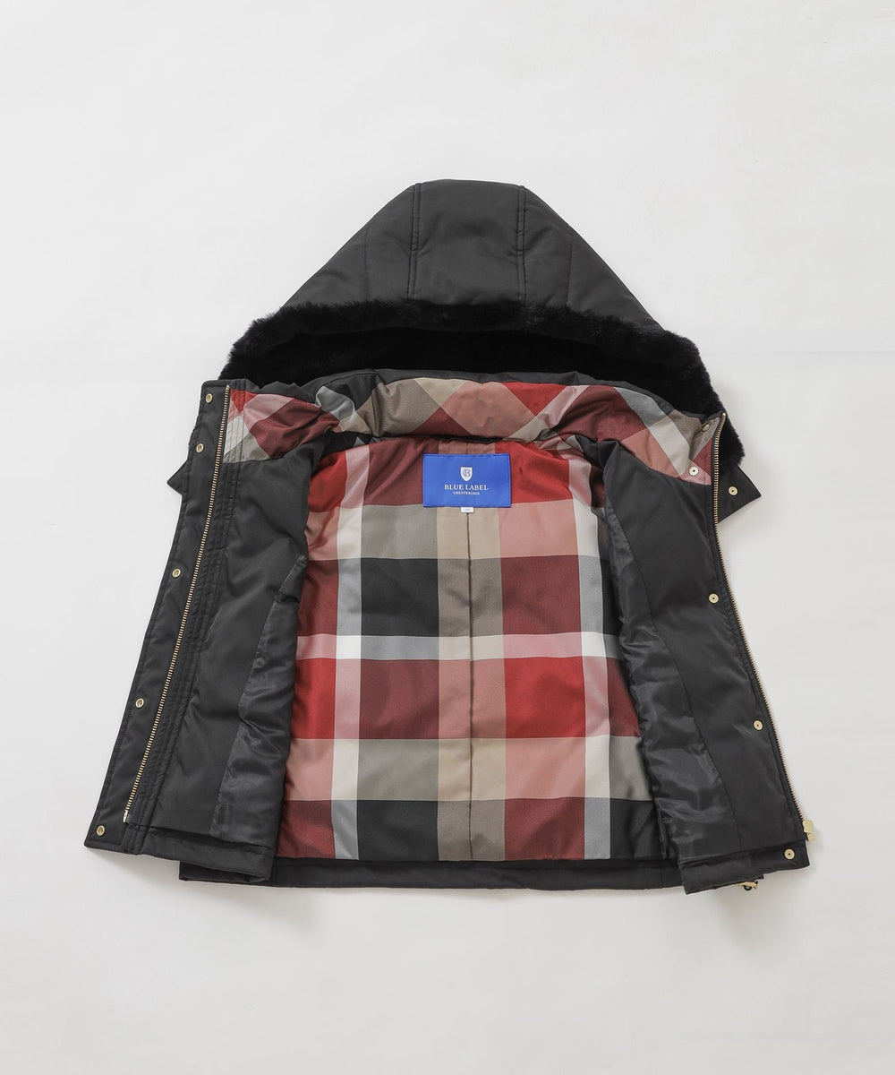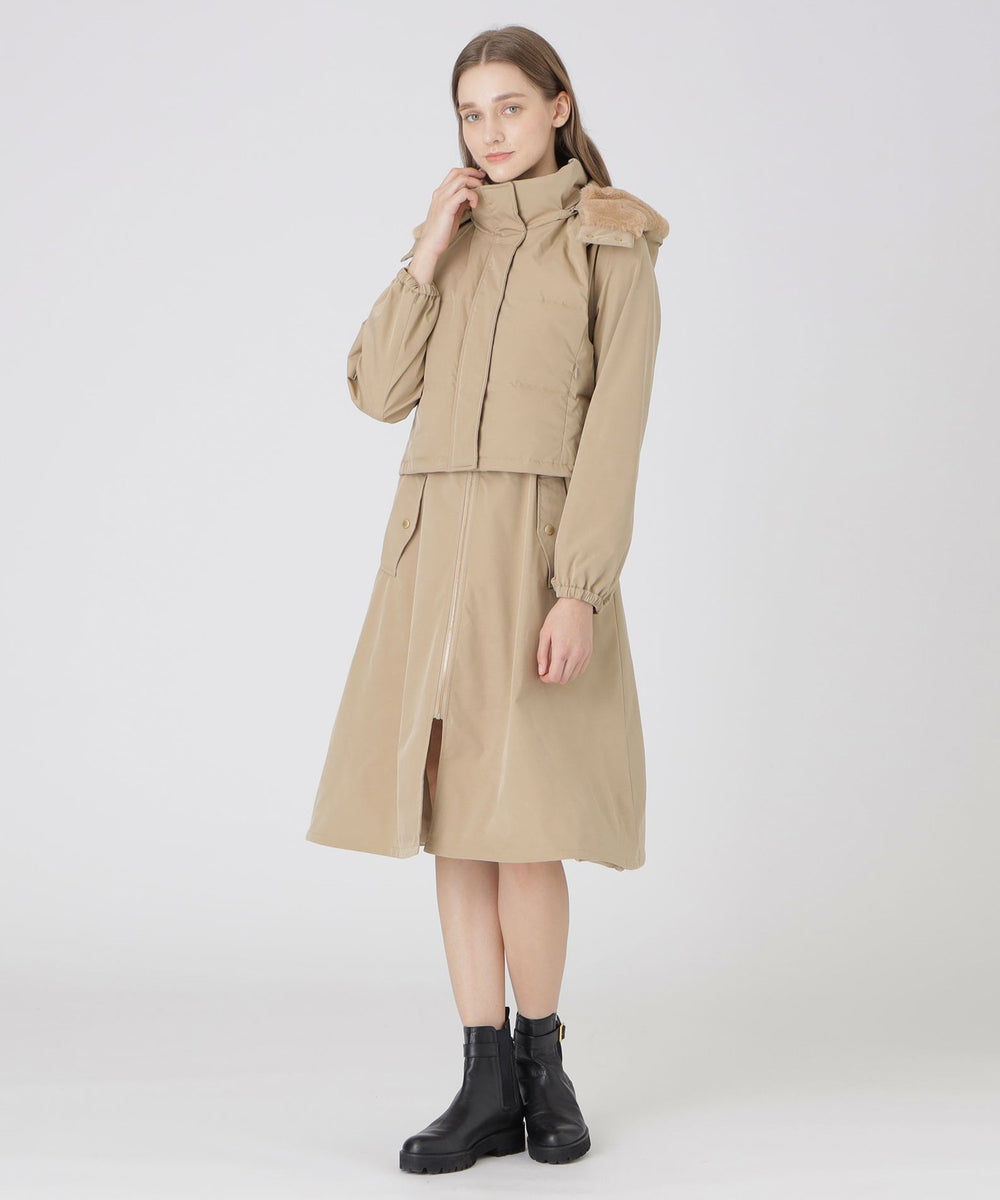 - ダウンベスト 表地 本体 複合繊維(ポリエステル)51% ポリエステル49% ファー部分 ポリエステル100% 中わた 本体 ダウン85% フェザー15% フード・前立て ポリエステル100% 裏地 ポリエステル コート 表地 複合繊維(ポリエステル)51% ポリエステル49% 裏地 ポリエステル