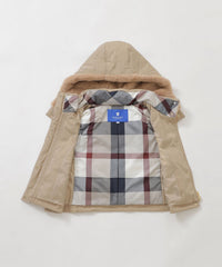 ベストは、フードにフェイクファーをあしらいました。ファーフードは取り外し可能です。