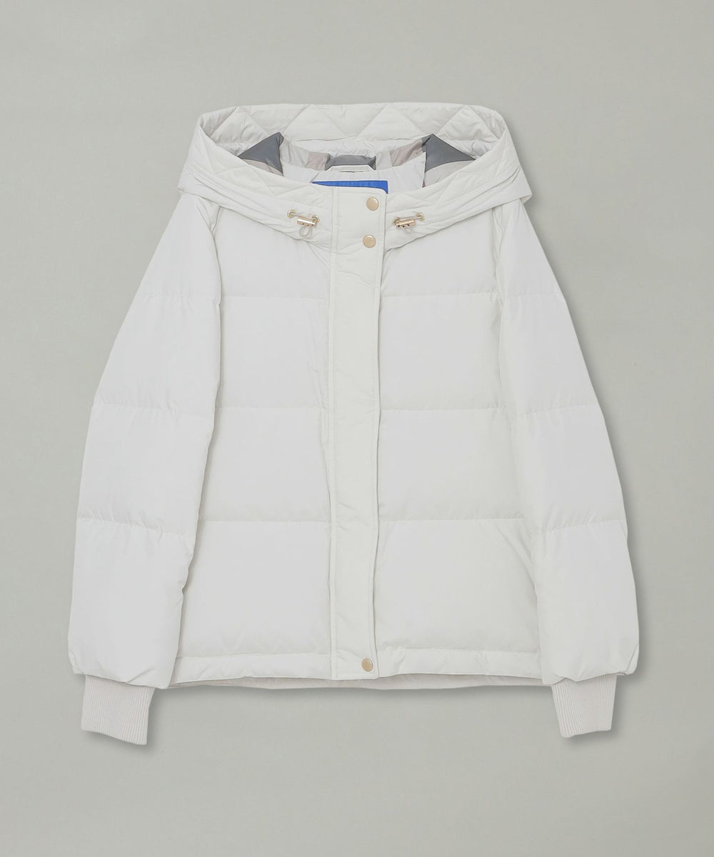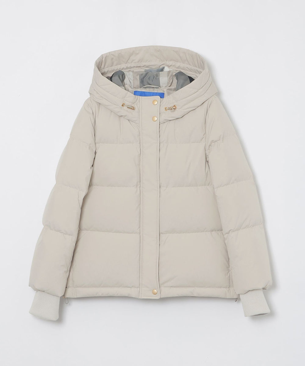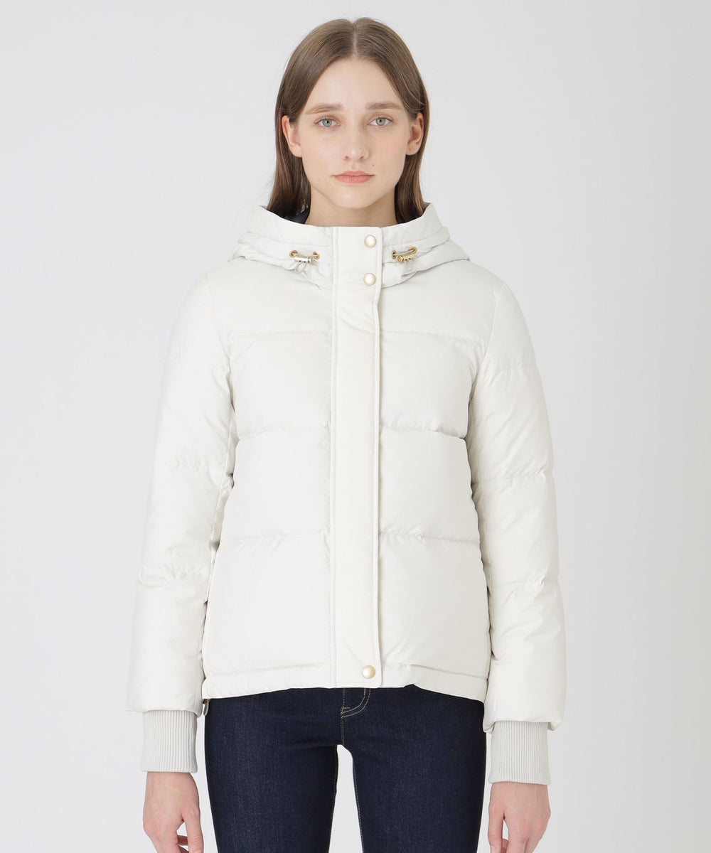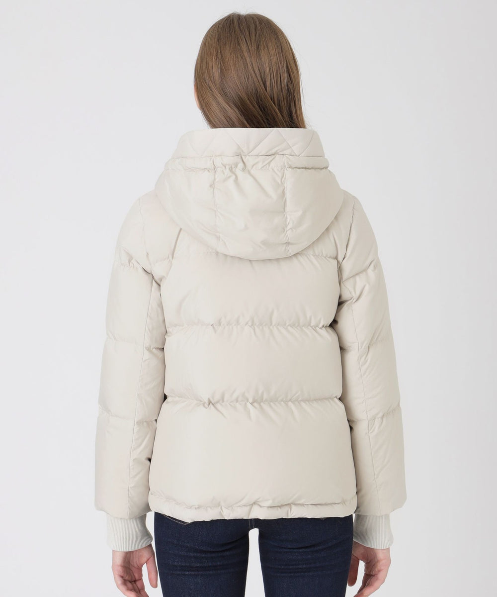 程よい光沢のある柔らかい生地で作られたダウンジャケットです。