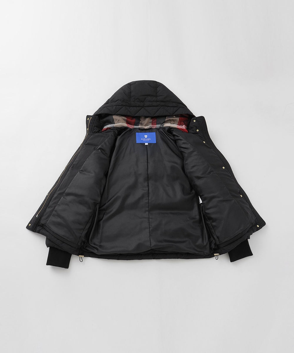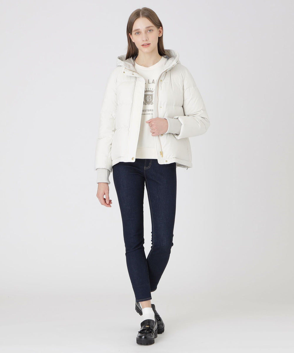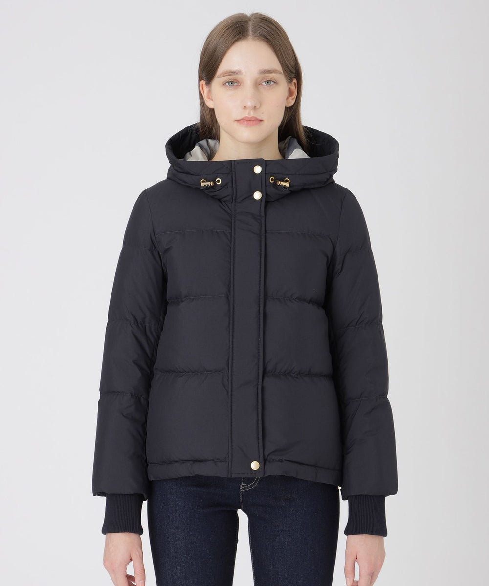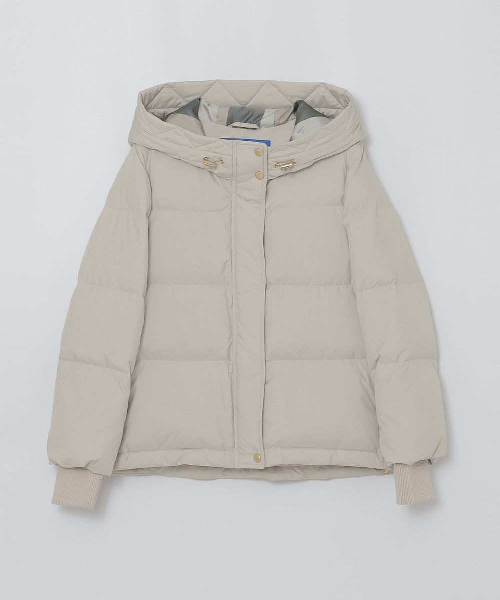 程よい光沢のある柔らかい生地で作られたダウンジャケットです。