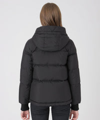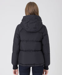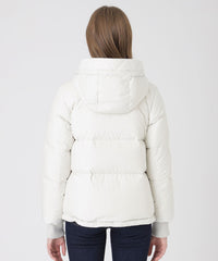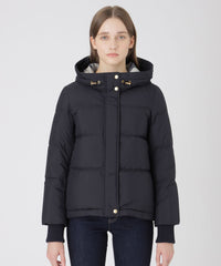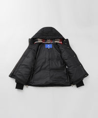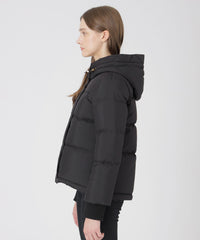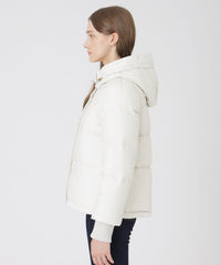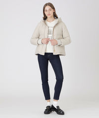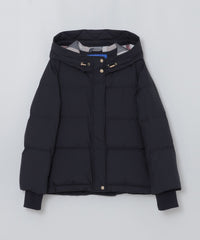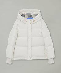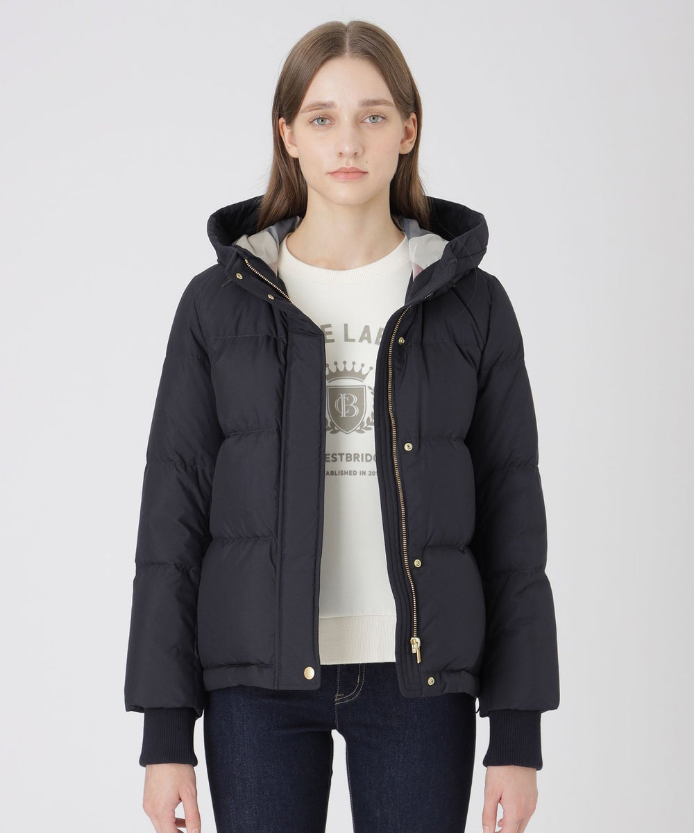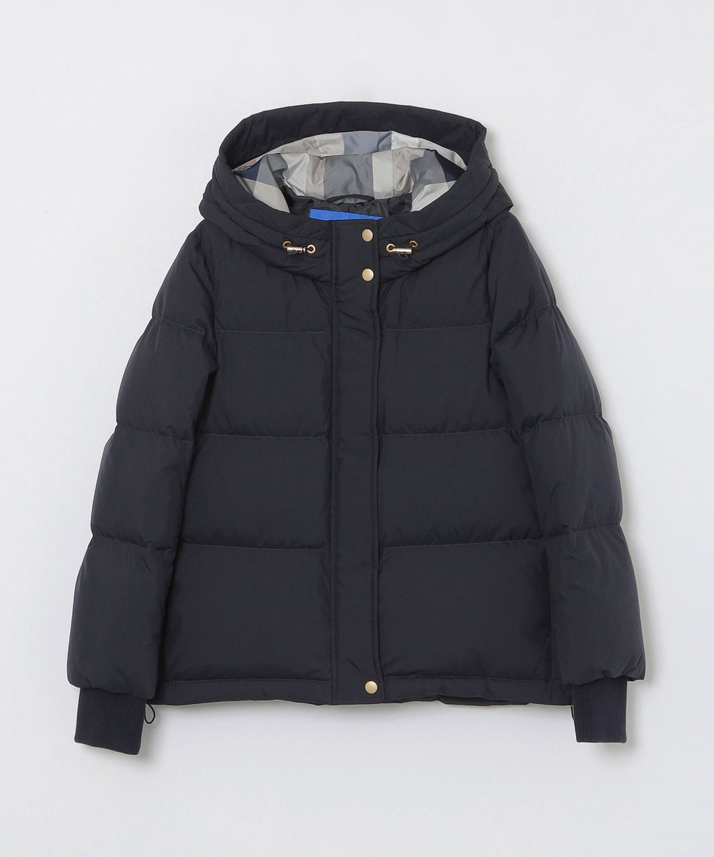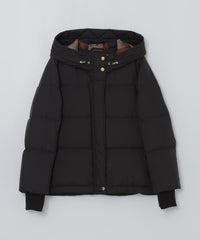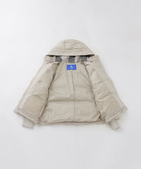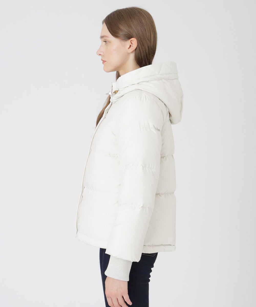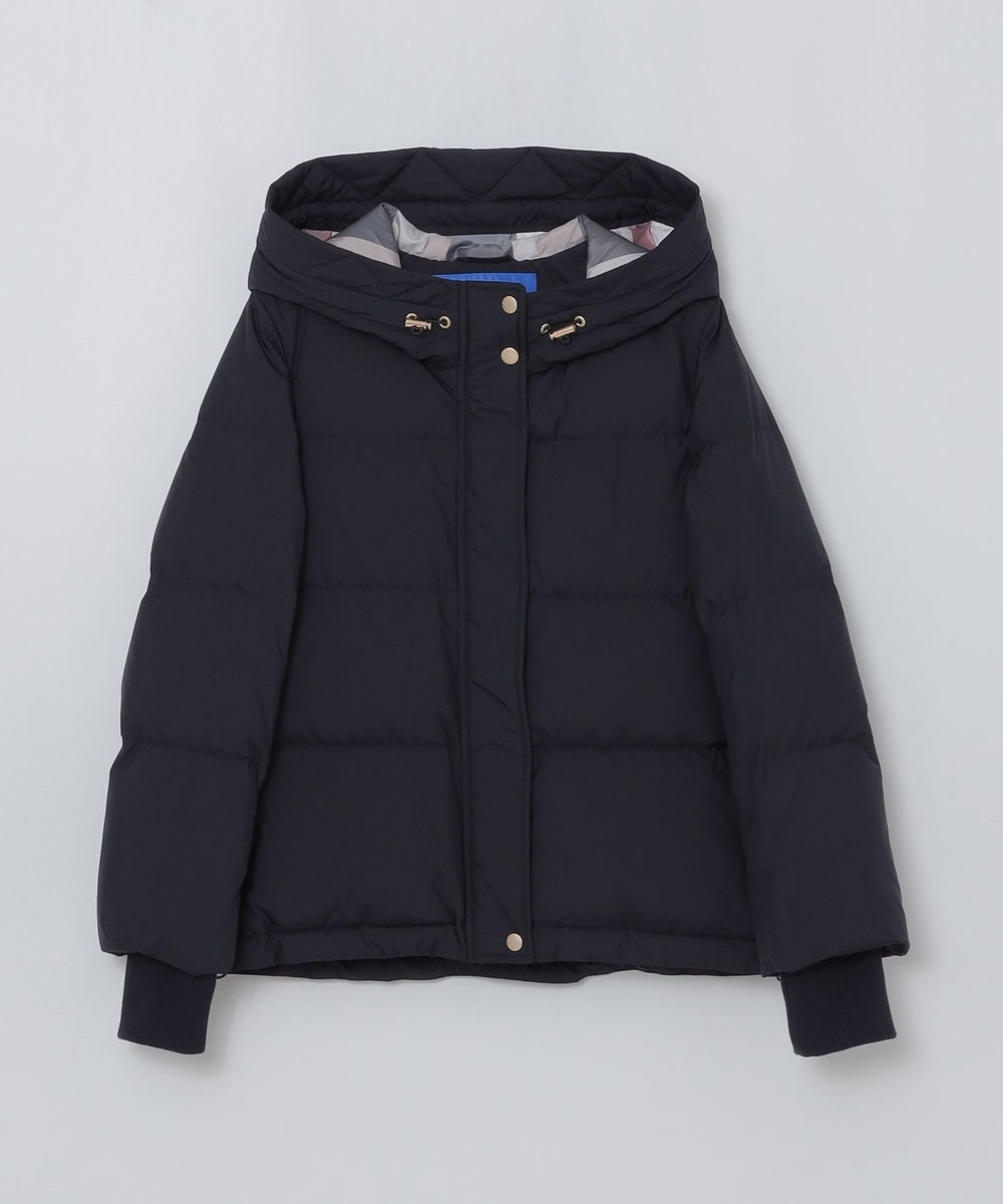 程よい光沢のある柔らかい生地で作られたダウンジャケットです。