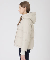続き衿のフードが、程よい抜け感と小顔効果をもたらします。