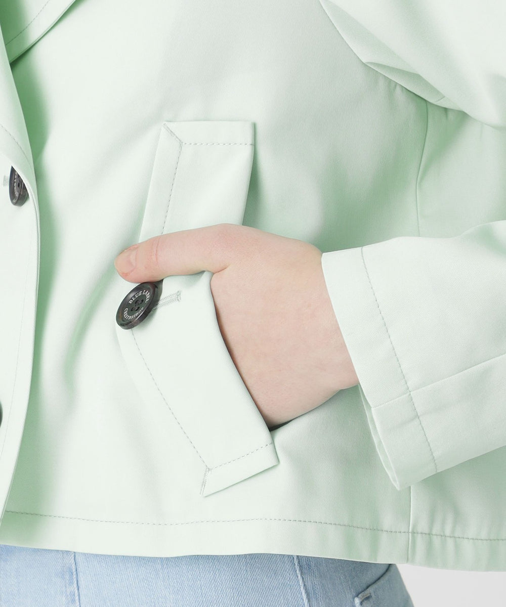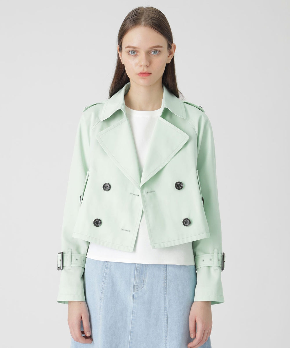 オンオフシーンで使えるショート丈のトレンチコートです。