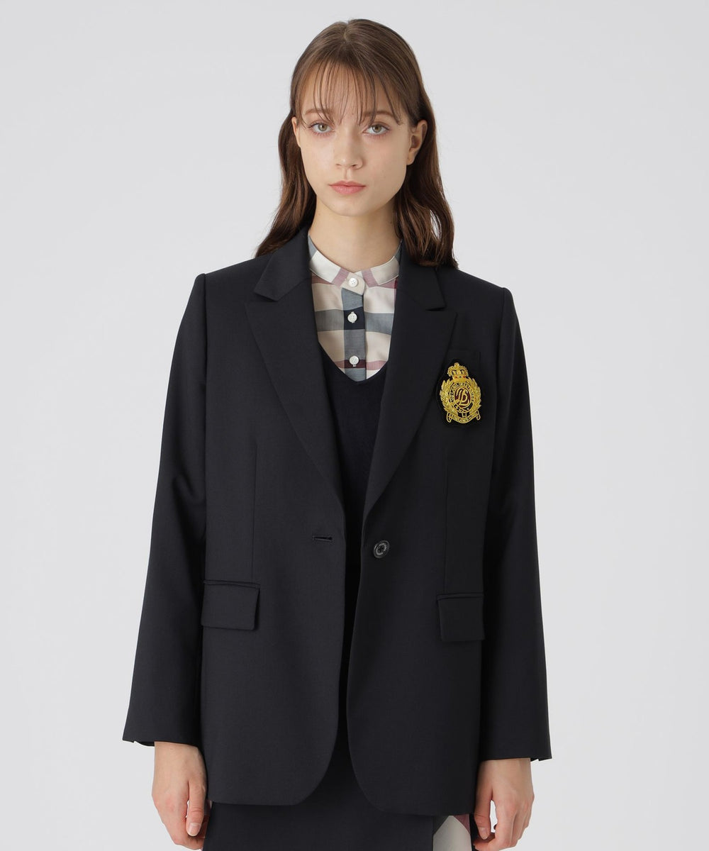 ◆胸元のエンブレムがポイントのテーラードジャケット