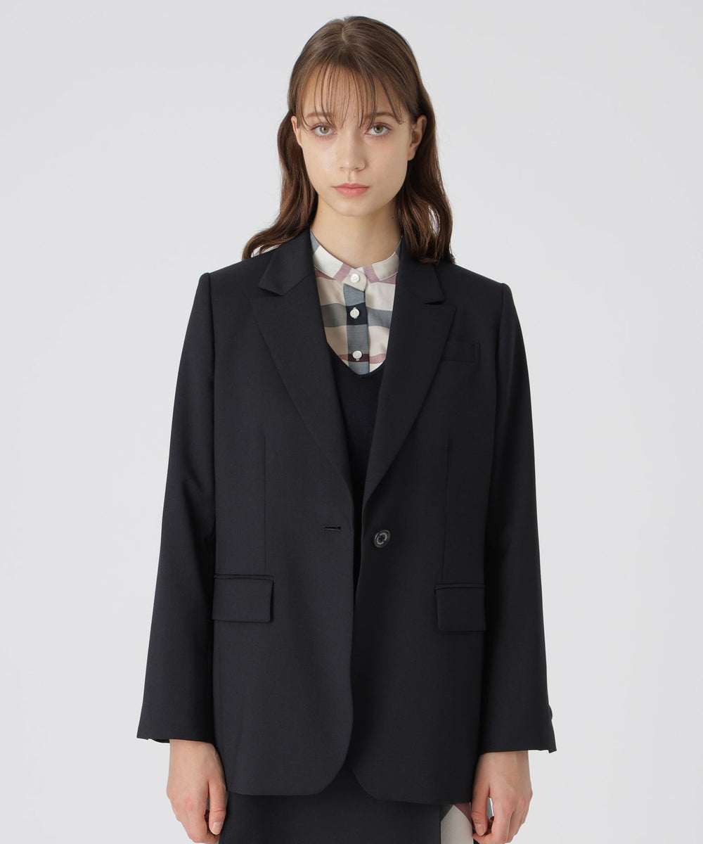 胸元のエンブレムがポイントのシングルブレストジャケットです。