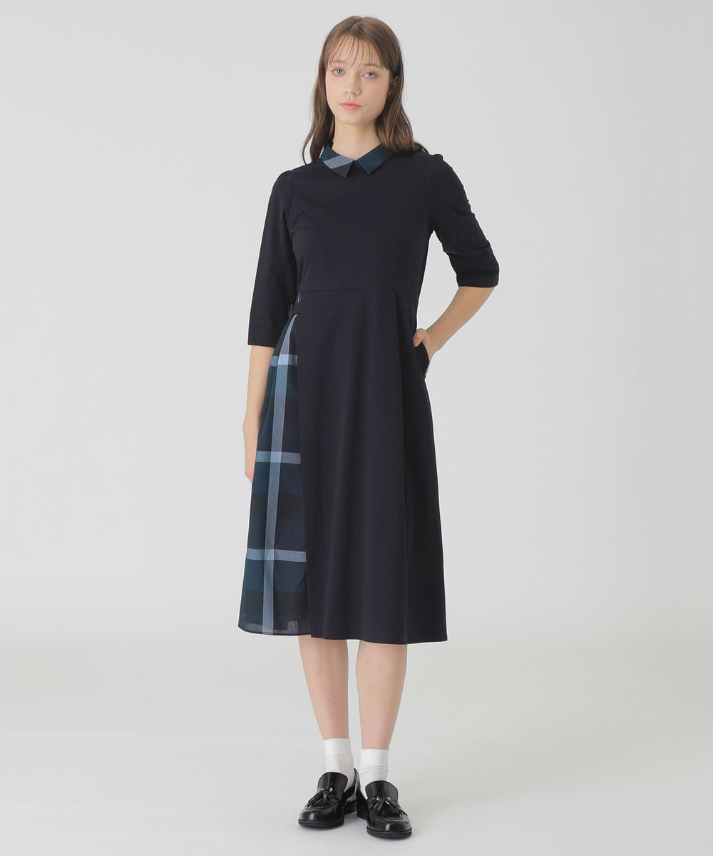 スカート部分のクレストブリッジチェック切替がポイントのドレスです。