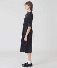 - ピマコットンプレーティング天竺パーシャルチェックドレス
