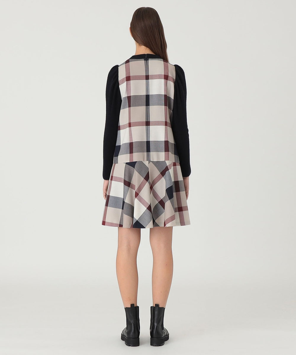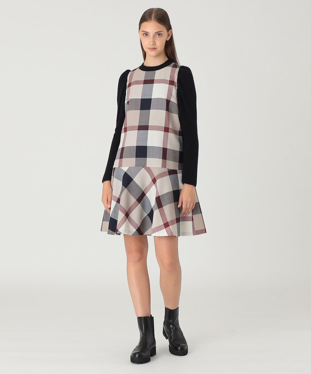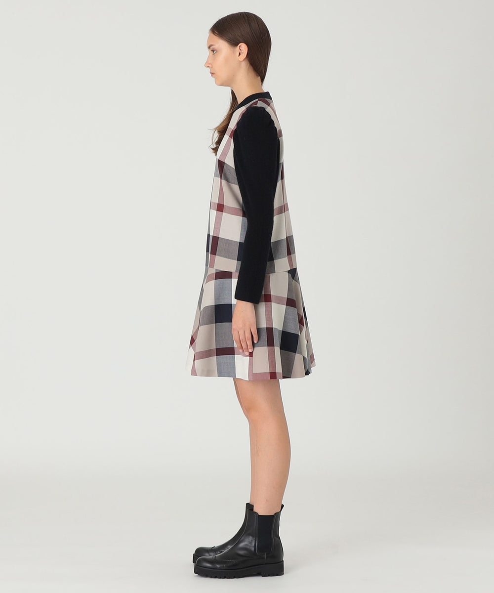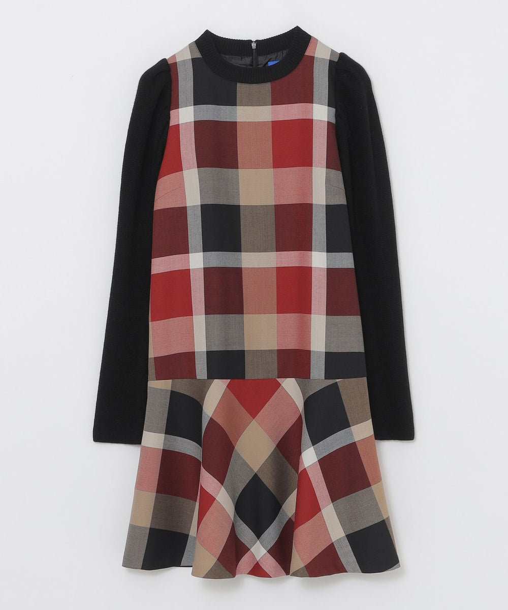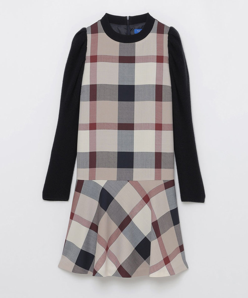 ◆クレストブリッジチェック×ニットのドッキングドレス