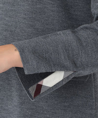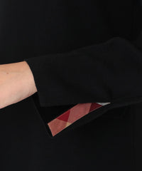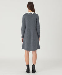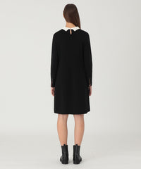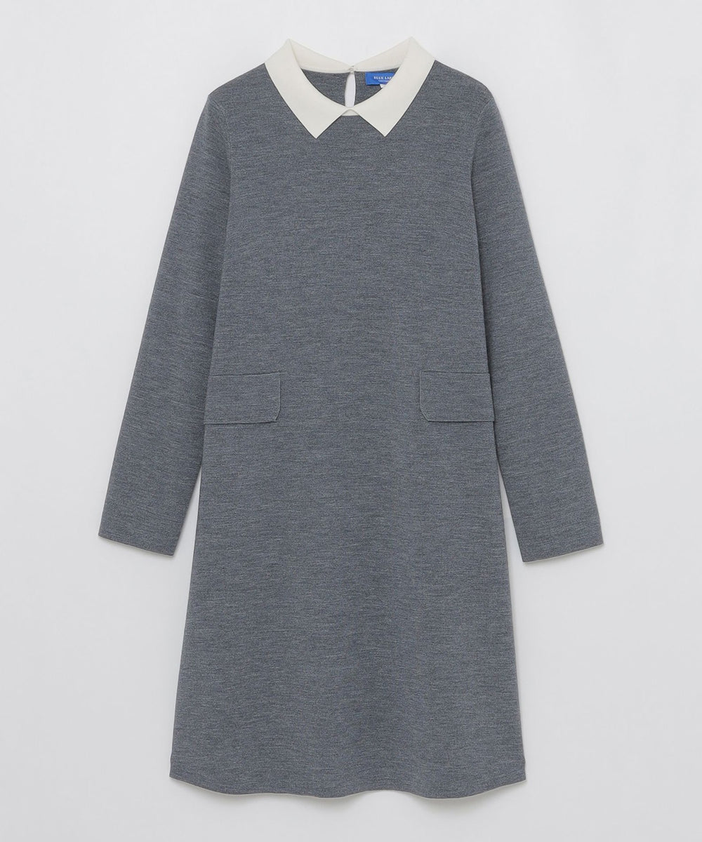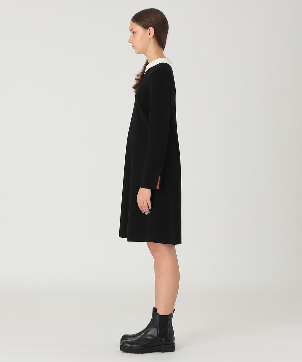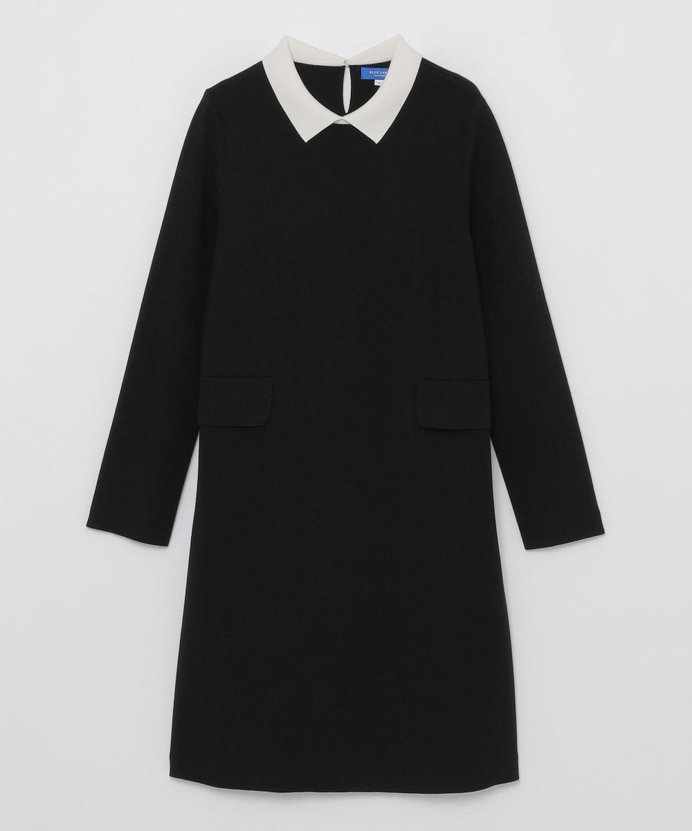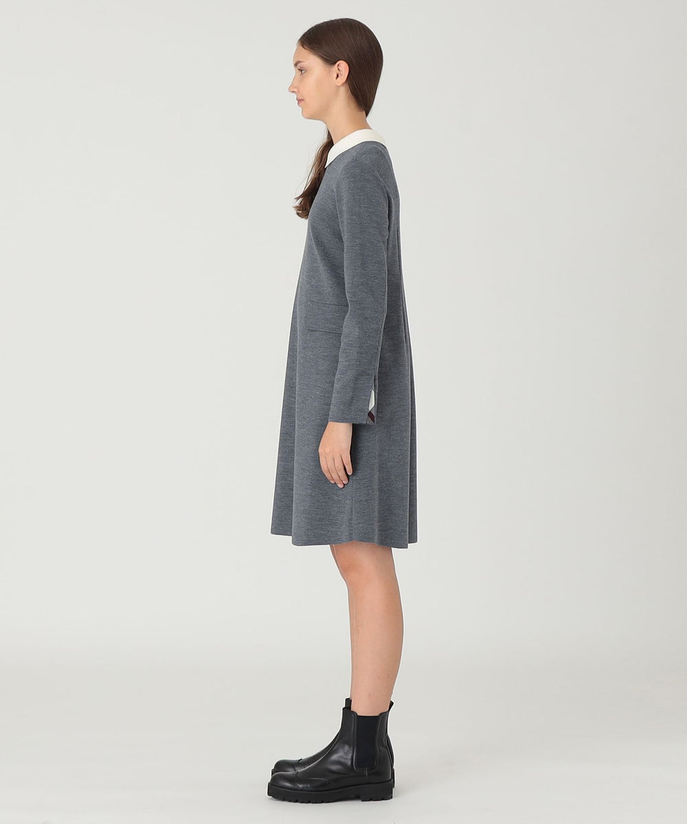 配色の衿と、フェイクのポケット口がきちんと感のある印象を与えるニットドレスです。