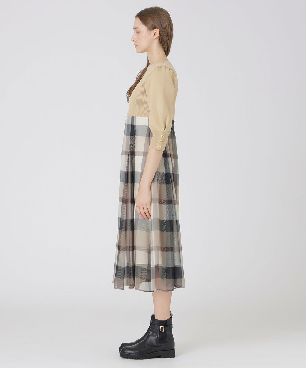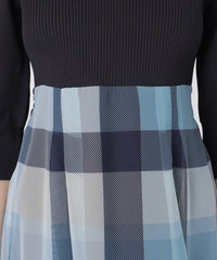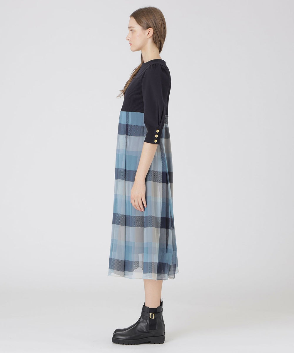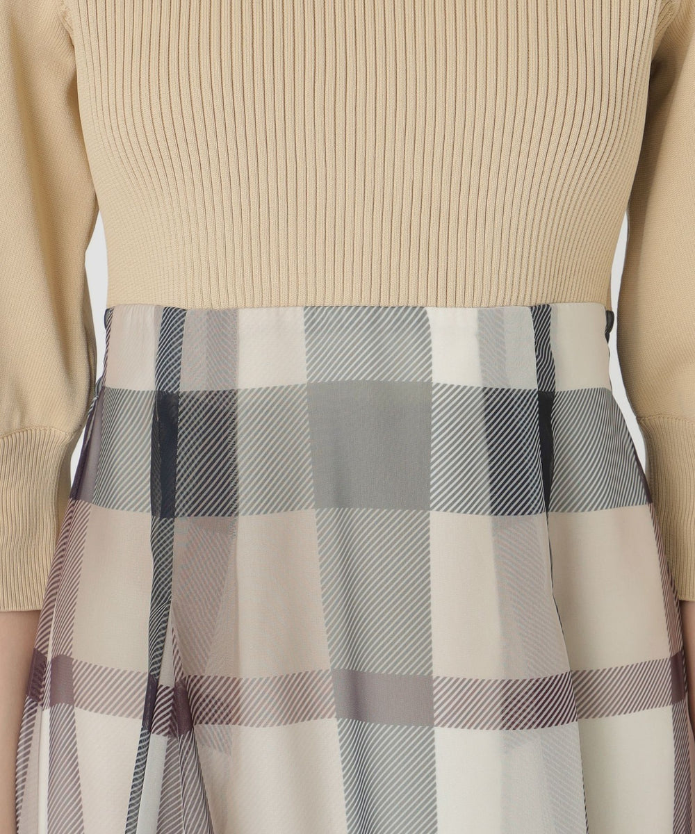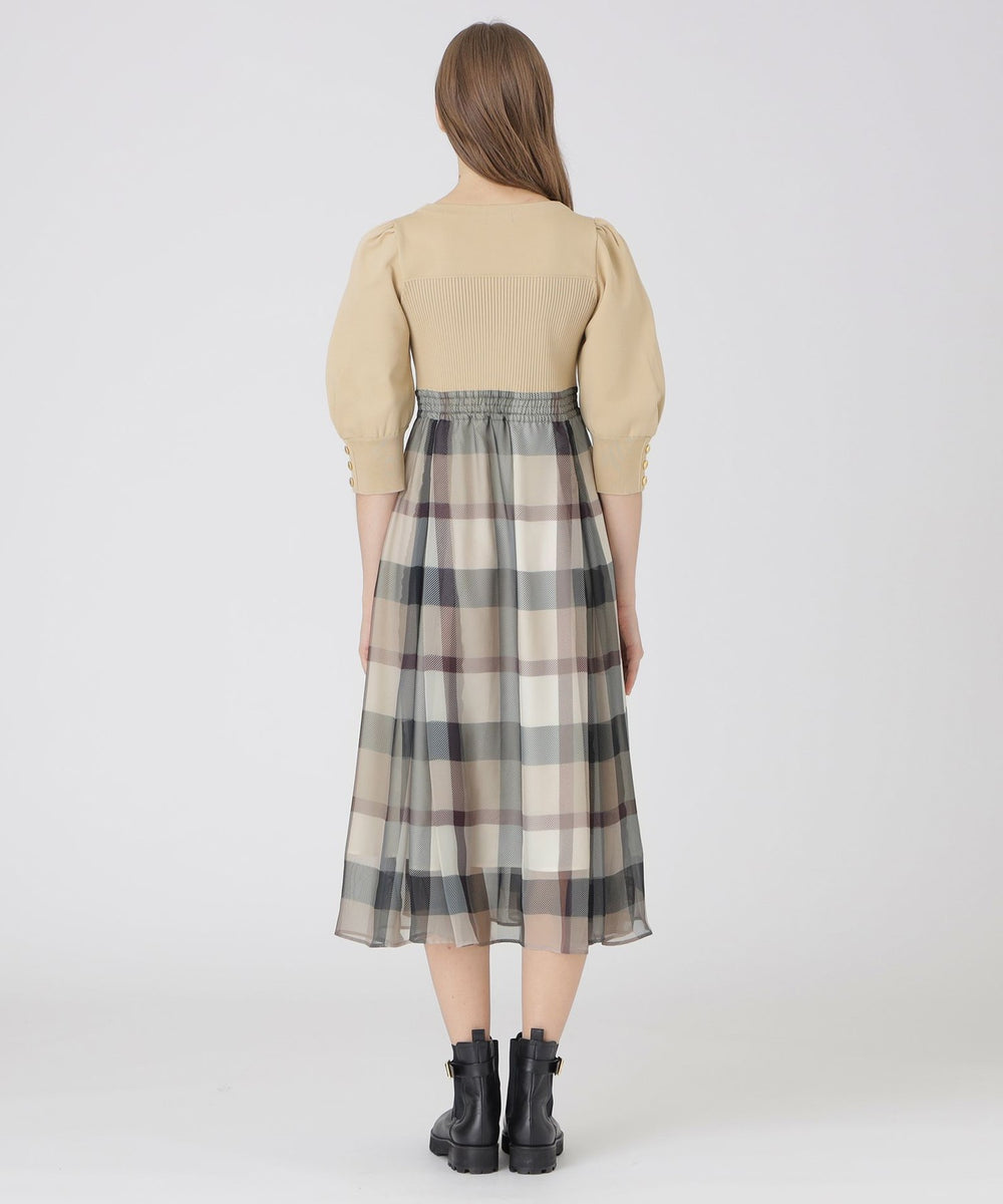 ニットとオリジナルチェックのシフォン生地をドッキングさせたドレスです。