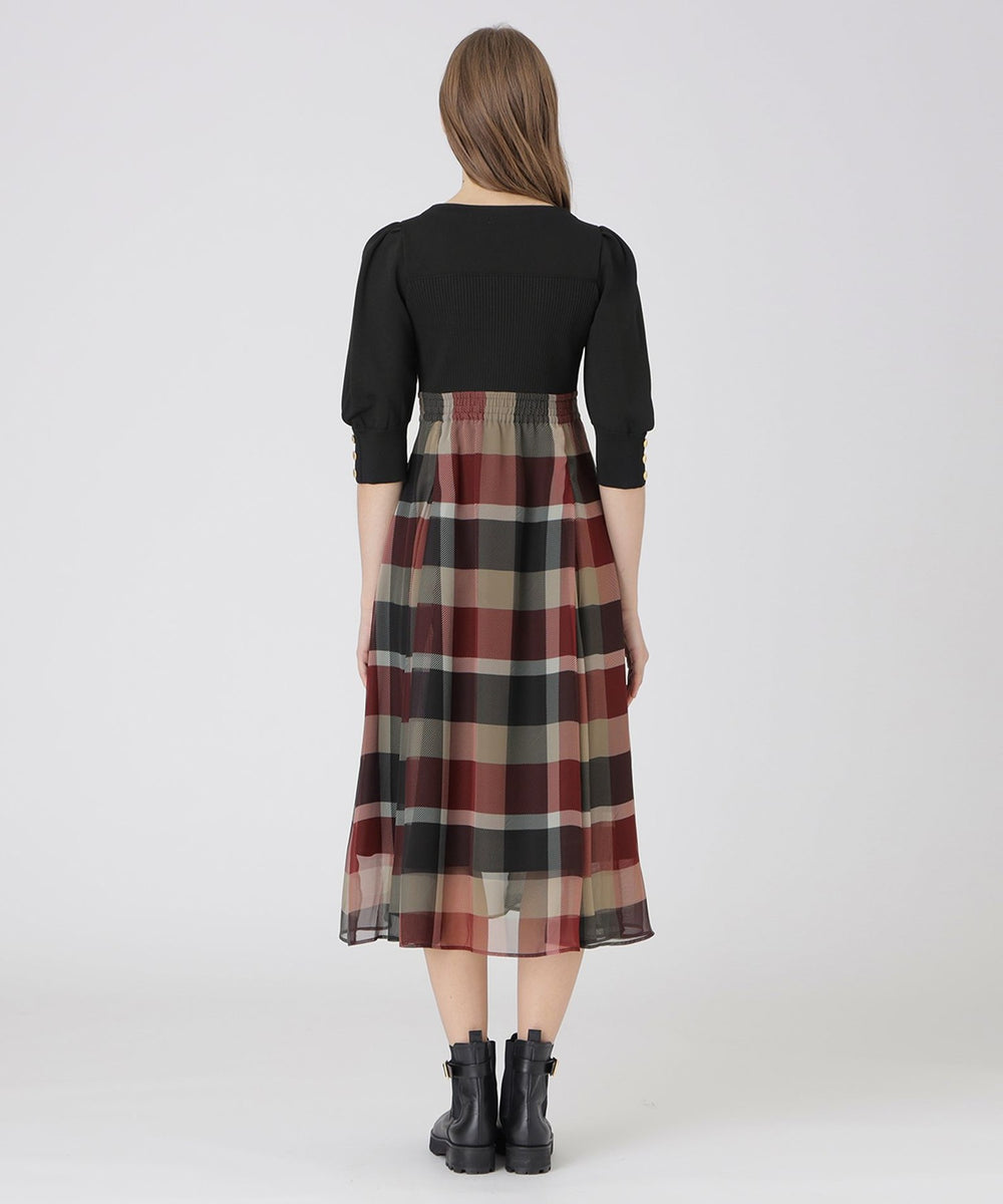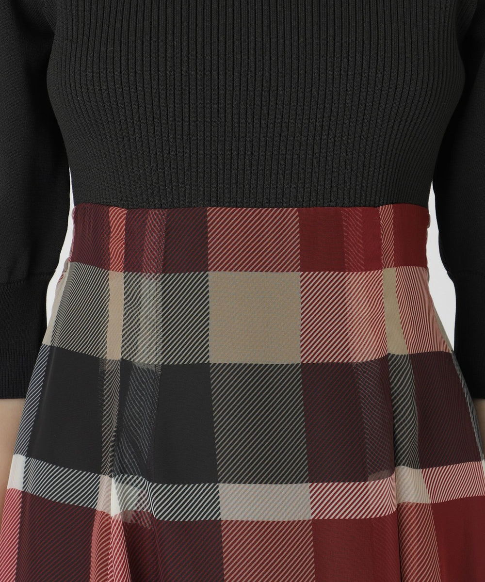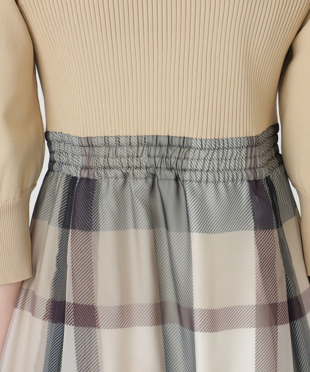 ニットとオリジナルチェックのシフォン生地をドッキングさせたドレスです。