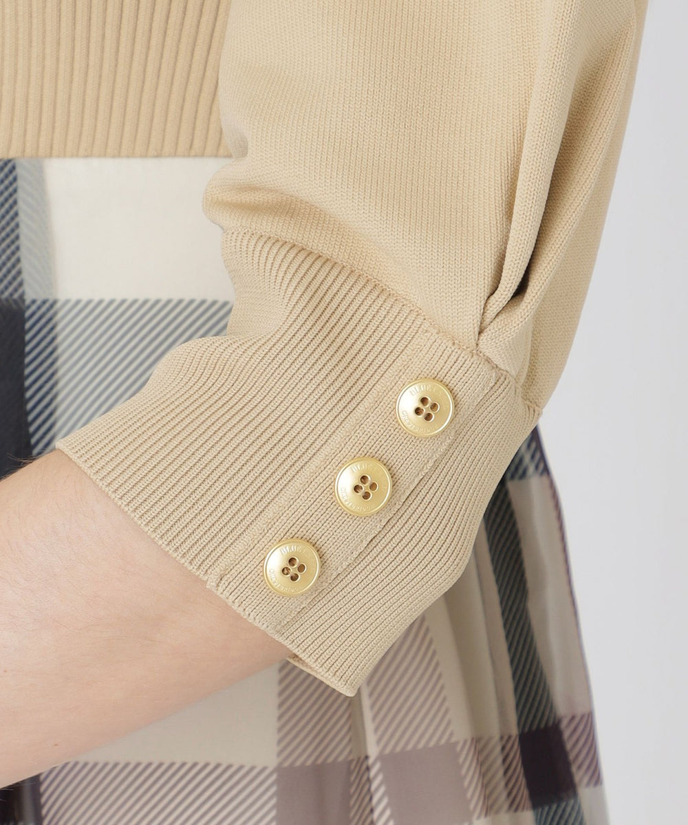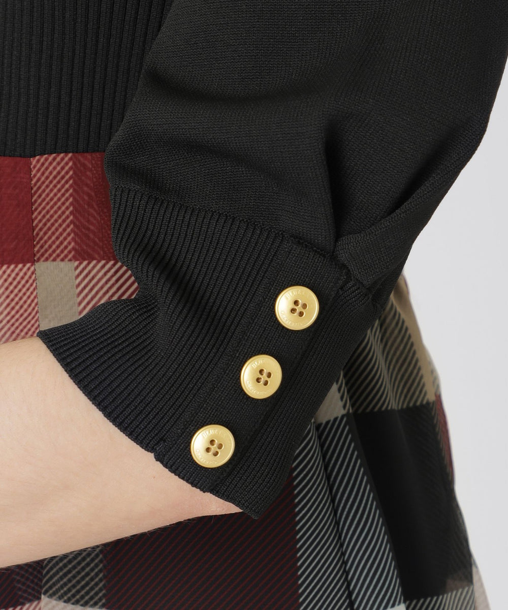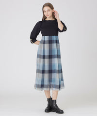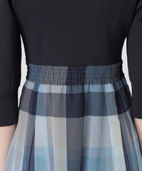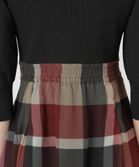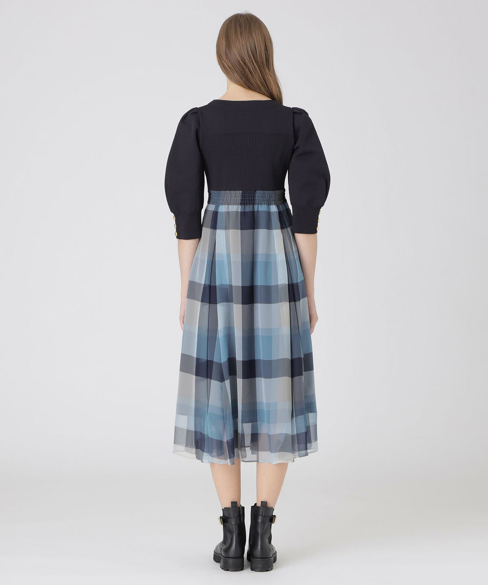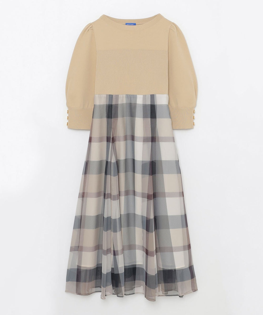 ニットとオリジナルチェックのシフォン生地をドッキングさせたドレスです。