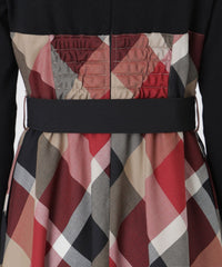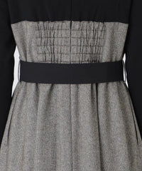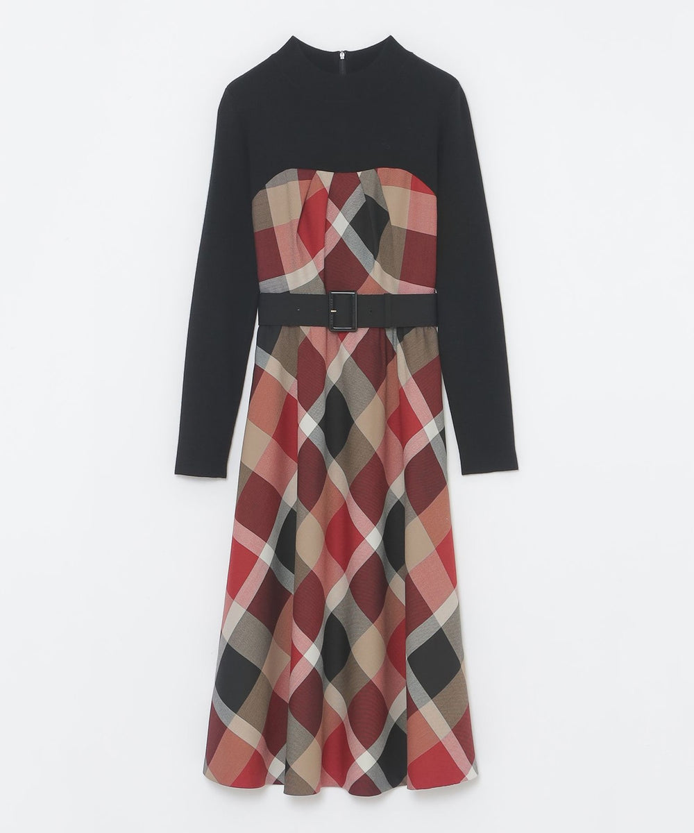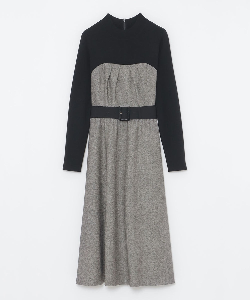 ビスチェとニットをコーディネートしたようなドッキングデザインのドレスです。