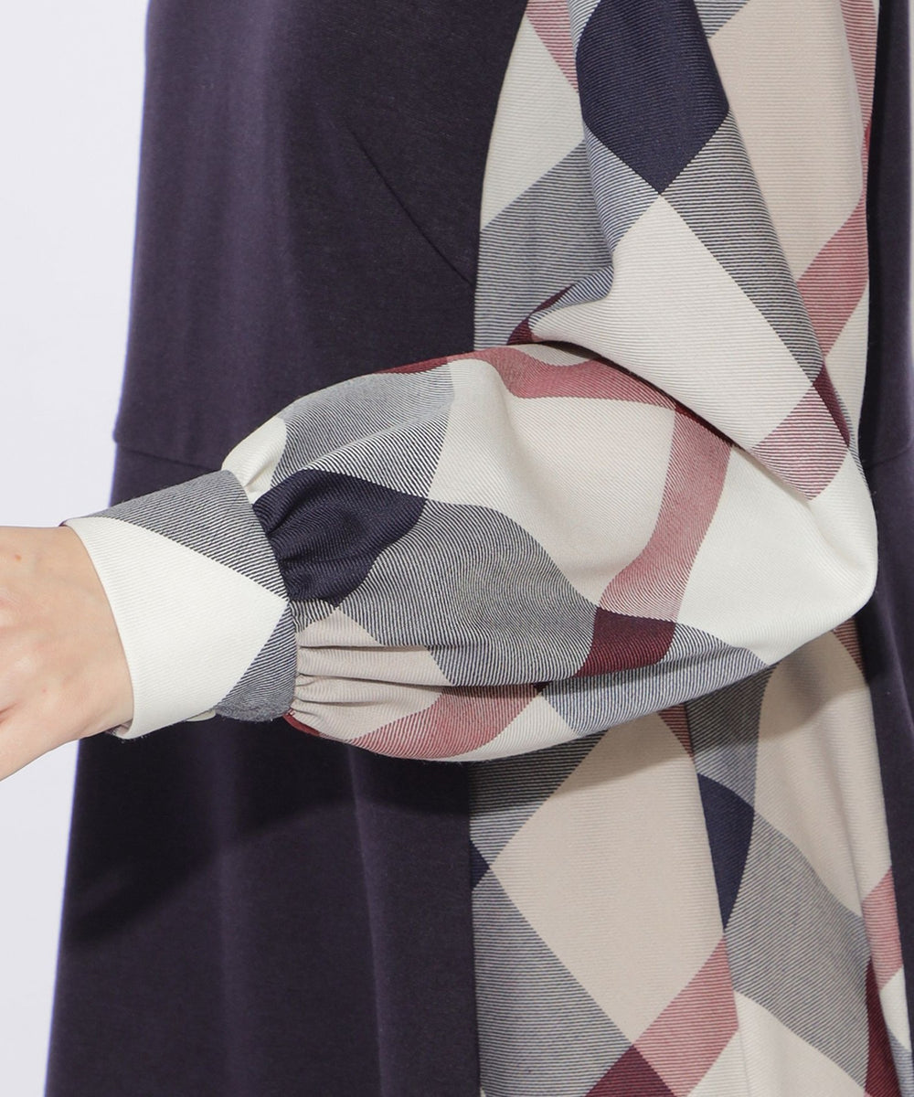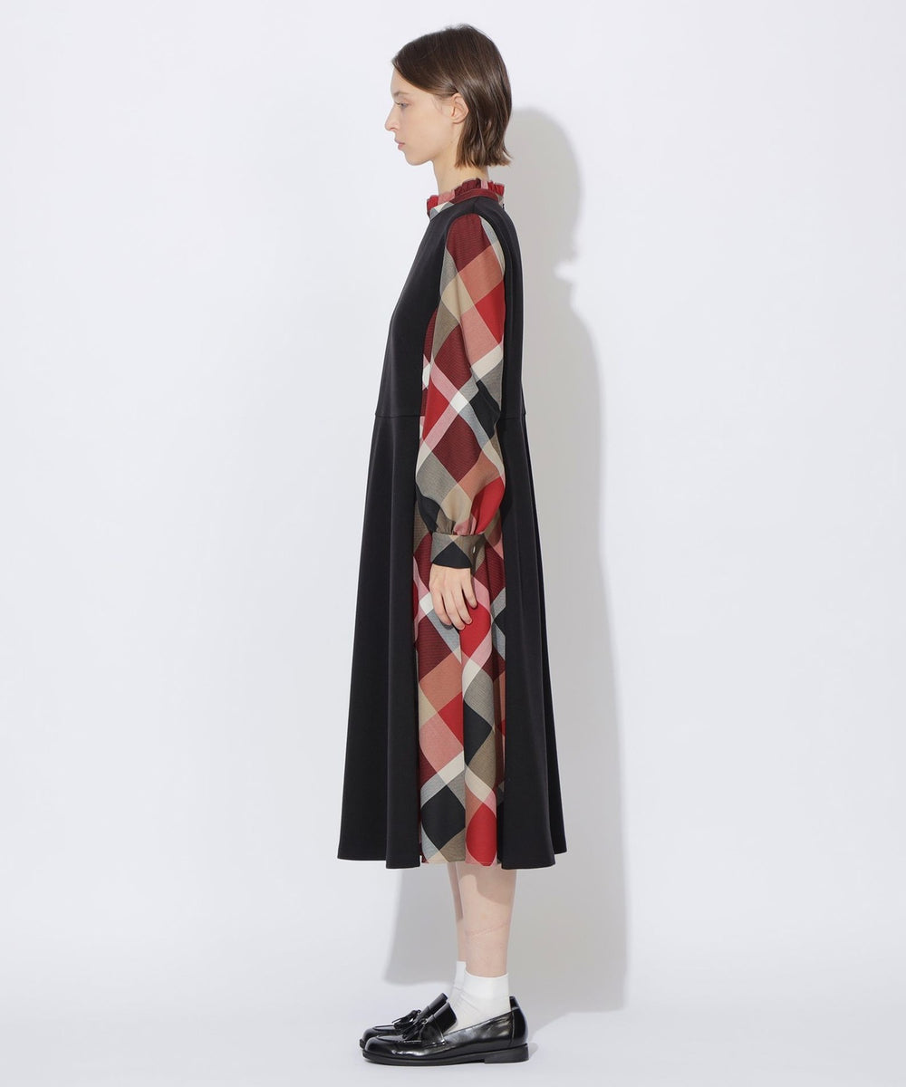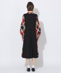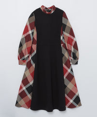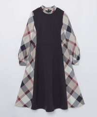 温かみのあるポンチ素材とクレストブリッジチェック素材を使用したドレスです。