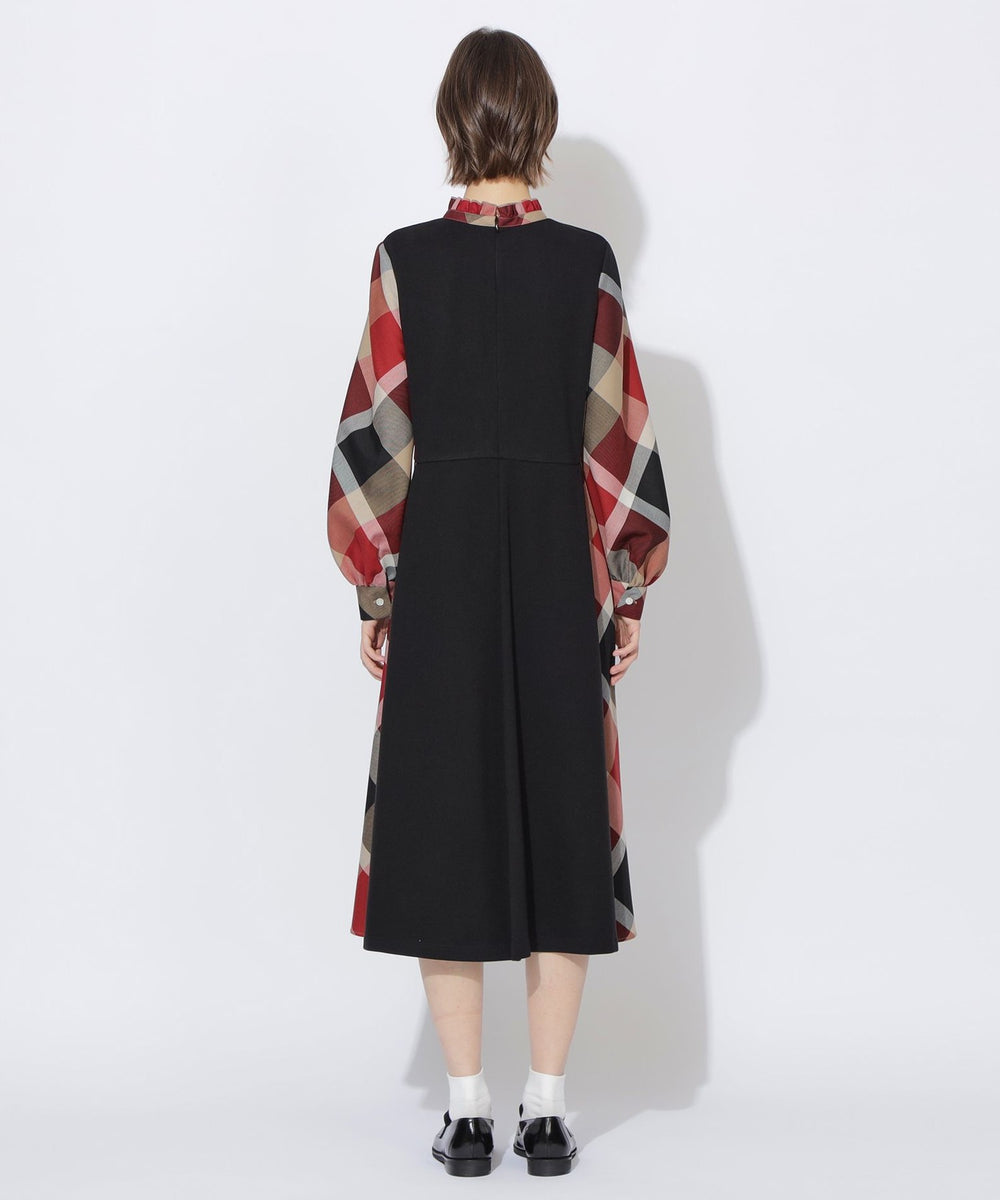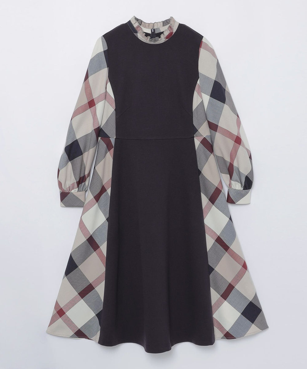 ◆クレストブリッジチェック×ポンチ素材の華やかドレス